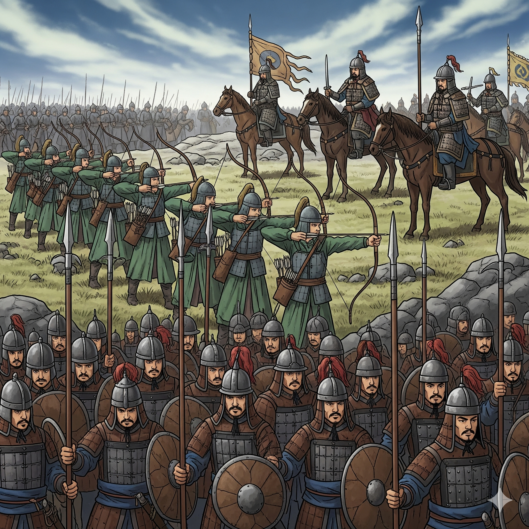 궁수는 단순히 원거리 공격만이 아니라, 군 진영을 보호하고, 기병의 돌격을 저지하는 전략적 병과로써 중용되었습니다.