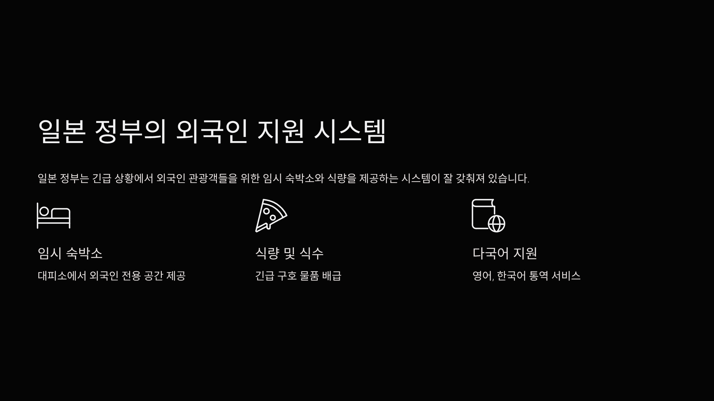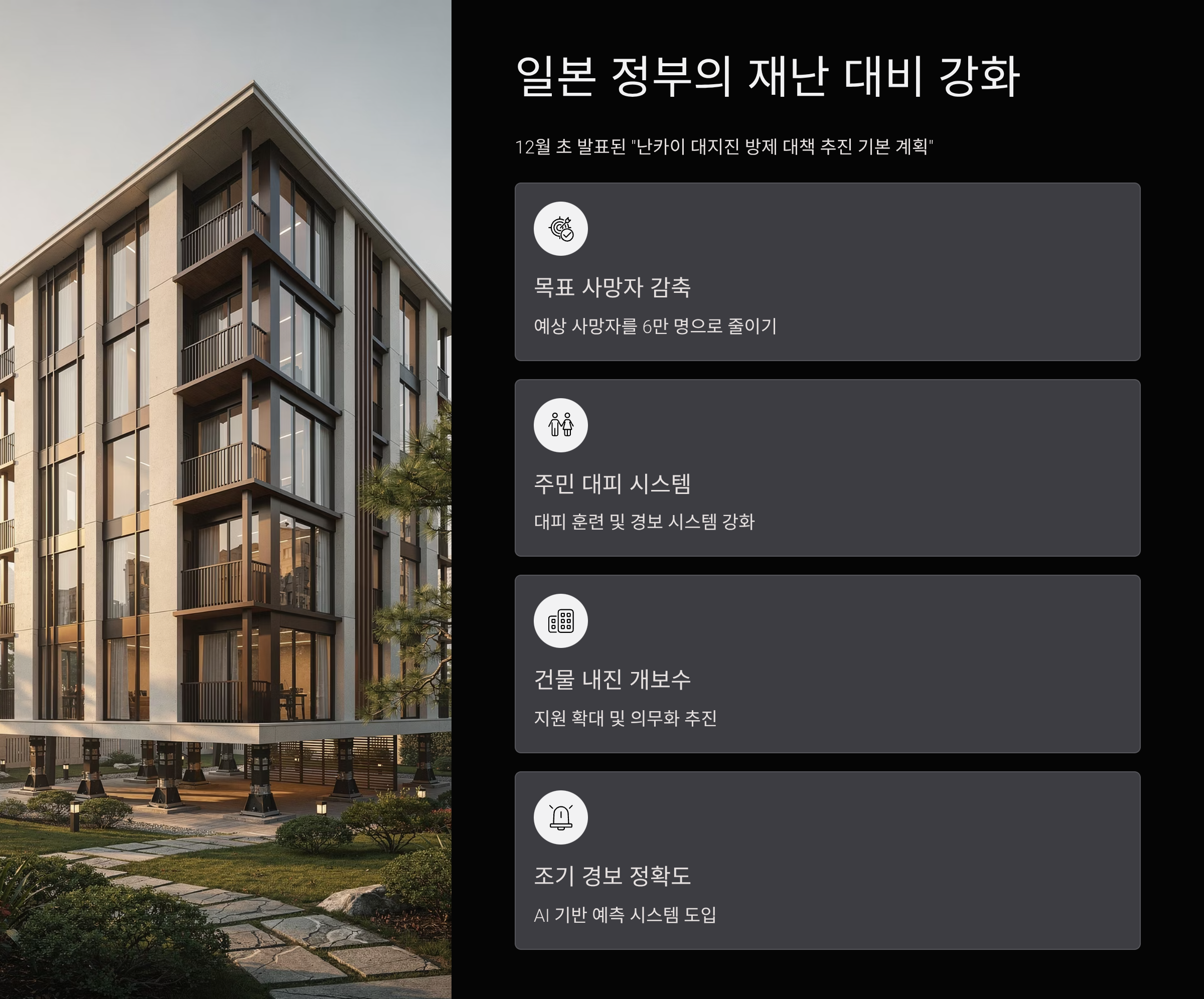 - ✅ 일본 정부의 재난 대응 시스템은 세계 최고 수준으로 발전 중