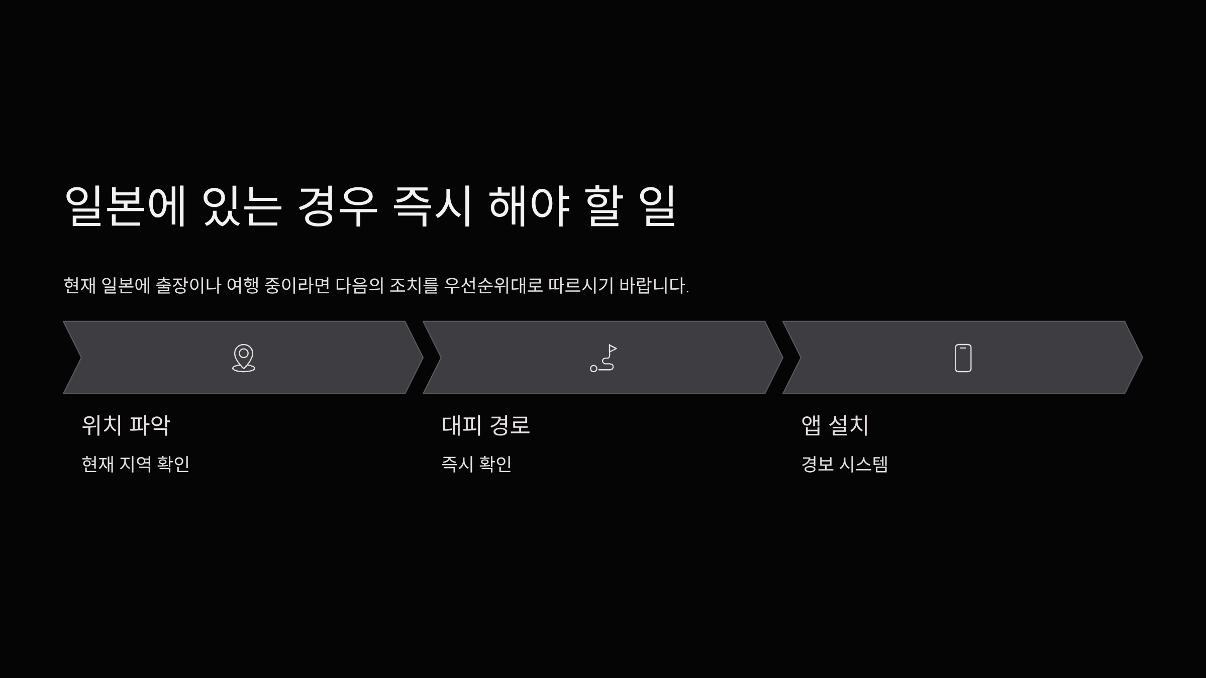 - 일본 출장 중인가요? → 현지 호텔의 대피 경로를 지금 확인하세요