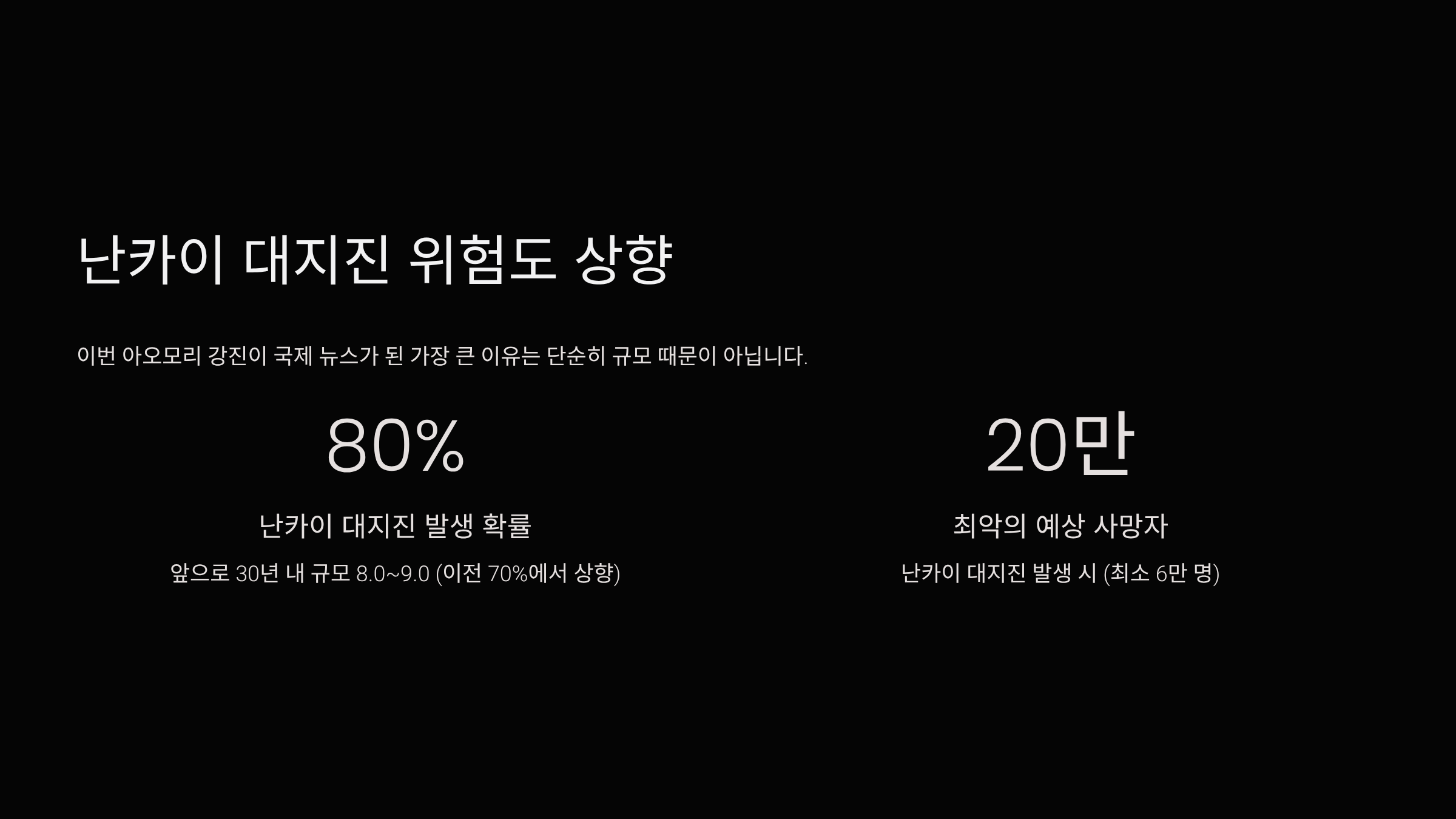 - ✅ 난카이 대지진 발생 확률: 80% (30년 내)