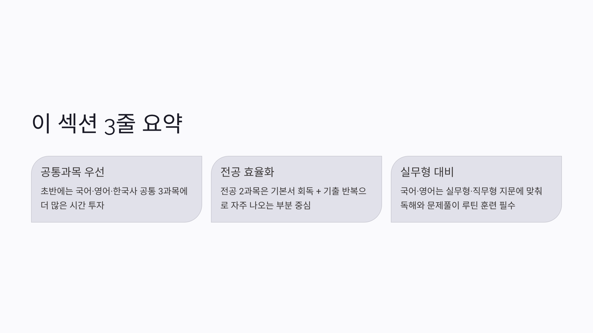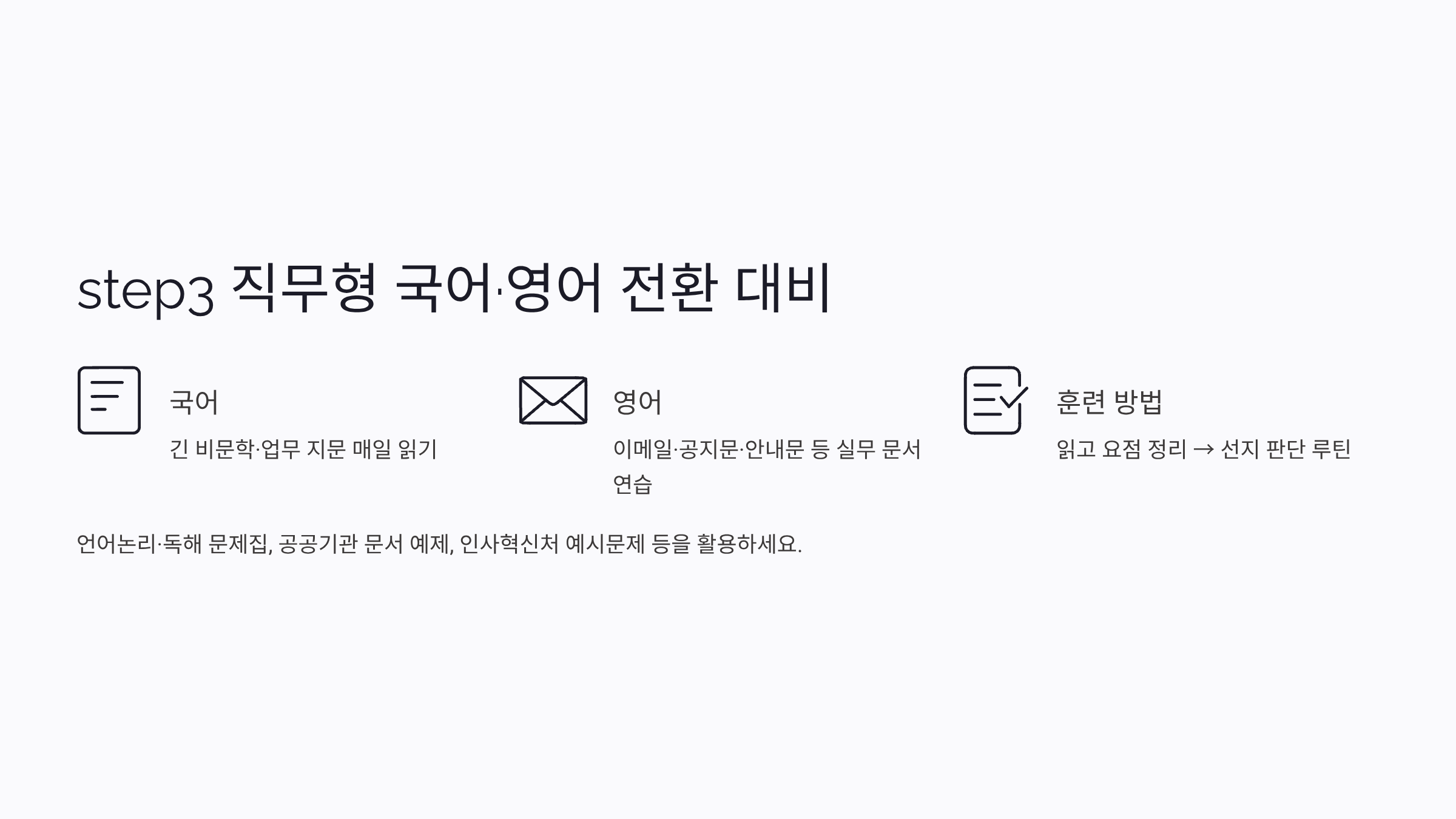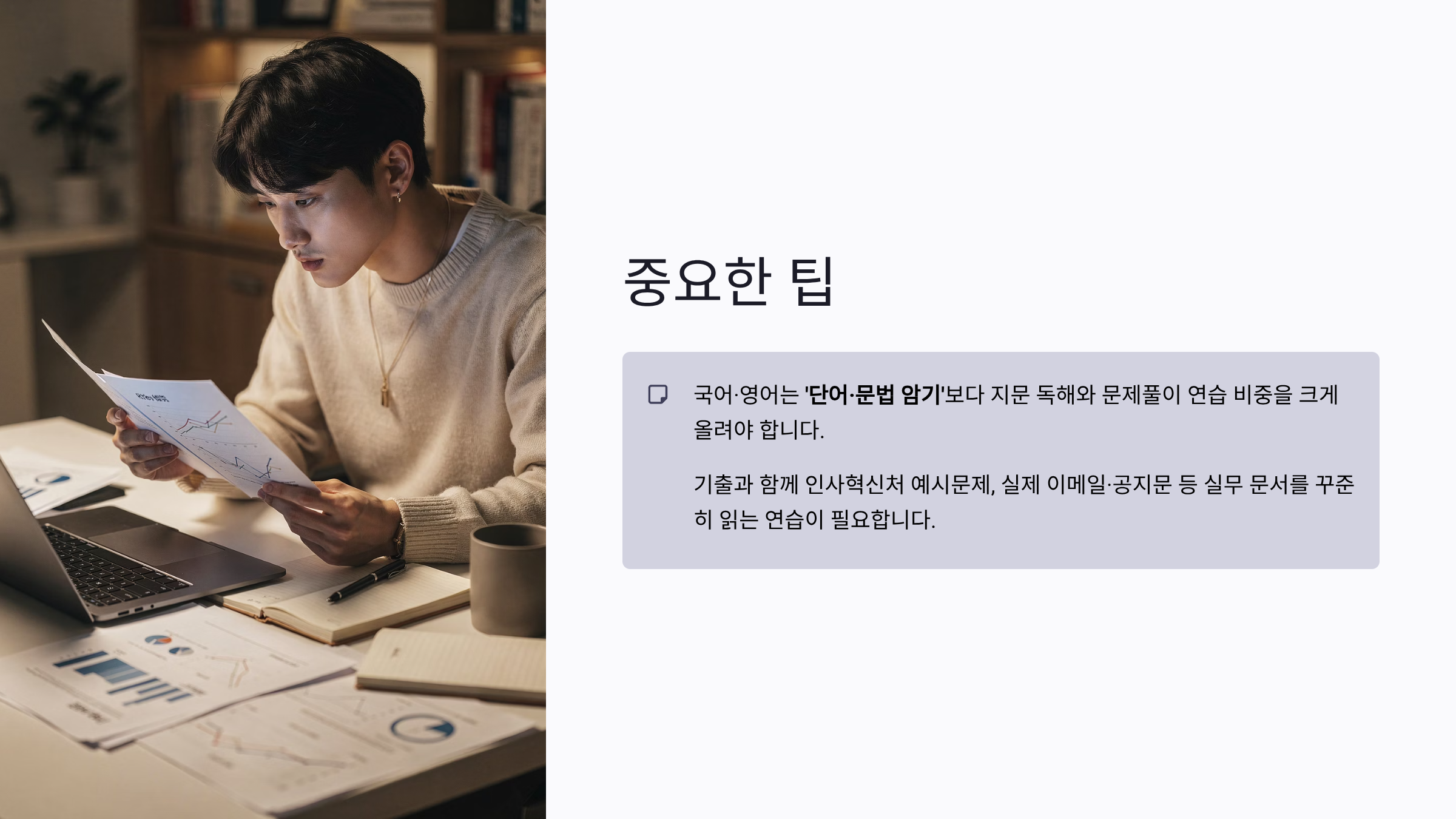 3 국어·영어는 실무형·직무형 지문에 맞춰 독해와 문제풀이 루틴 훈련이 필수입니다.