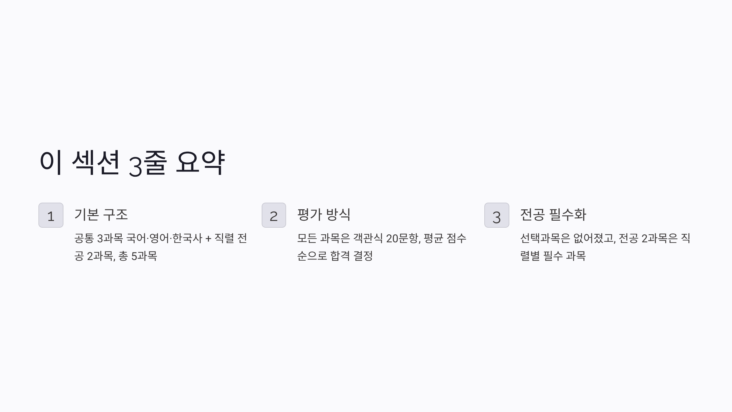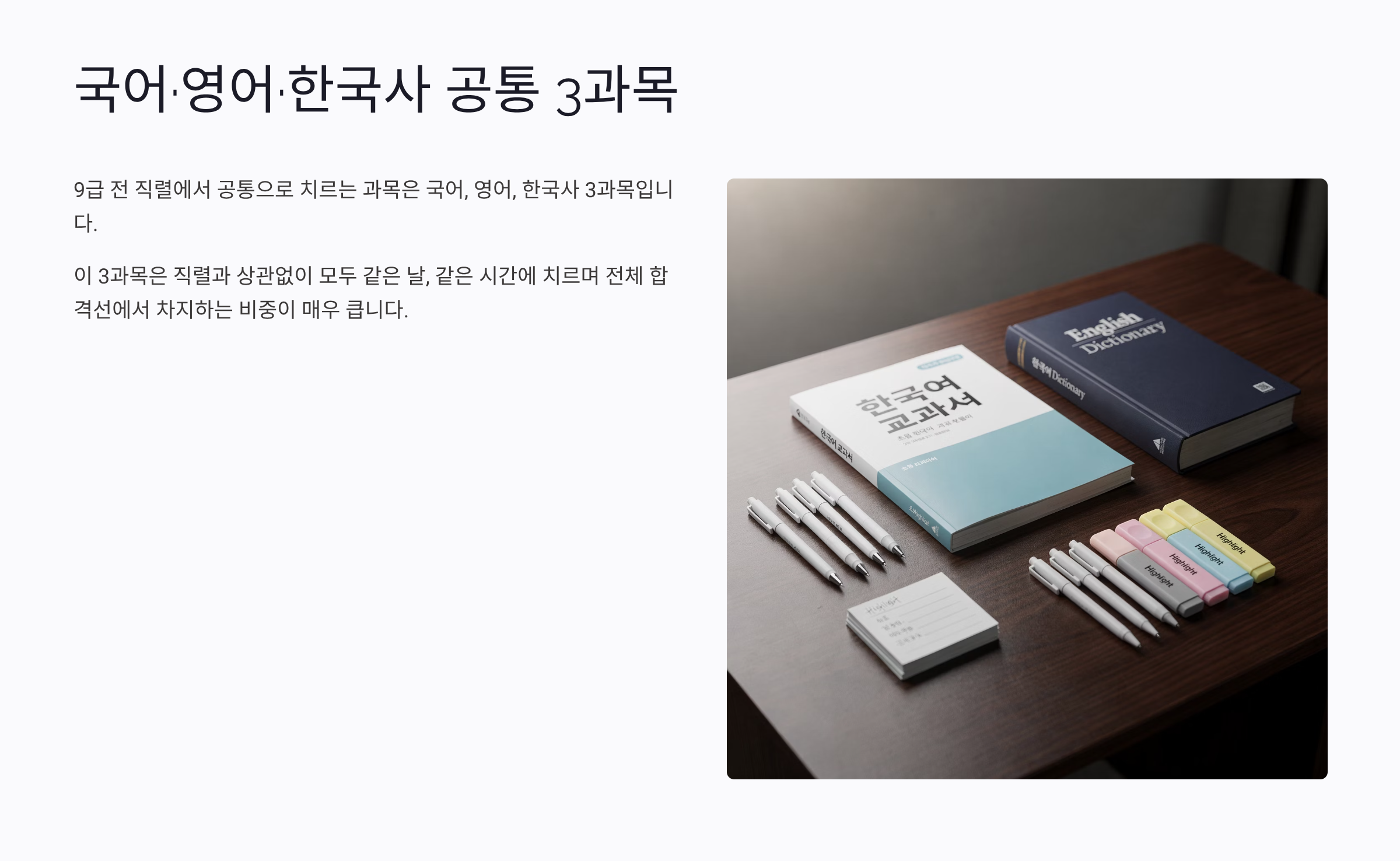 1 국어·영어·한국사 3개 공통과목 + 직렬 전공