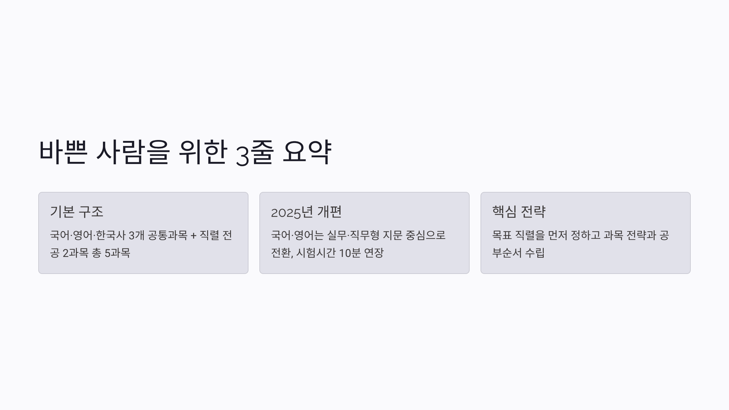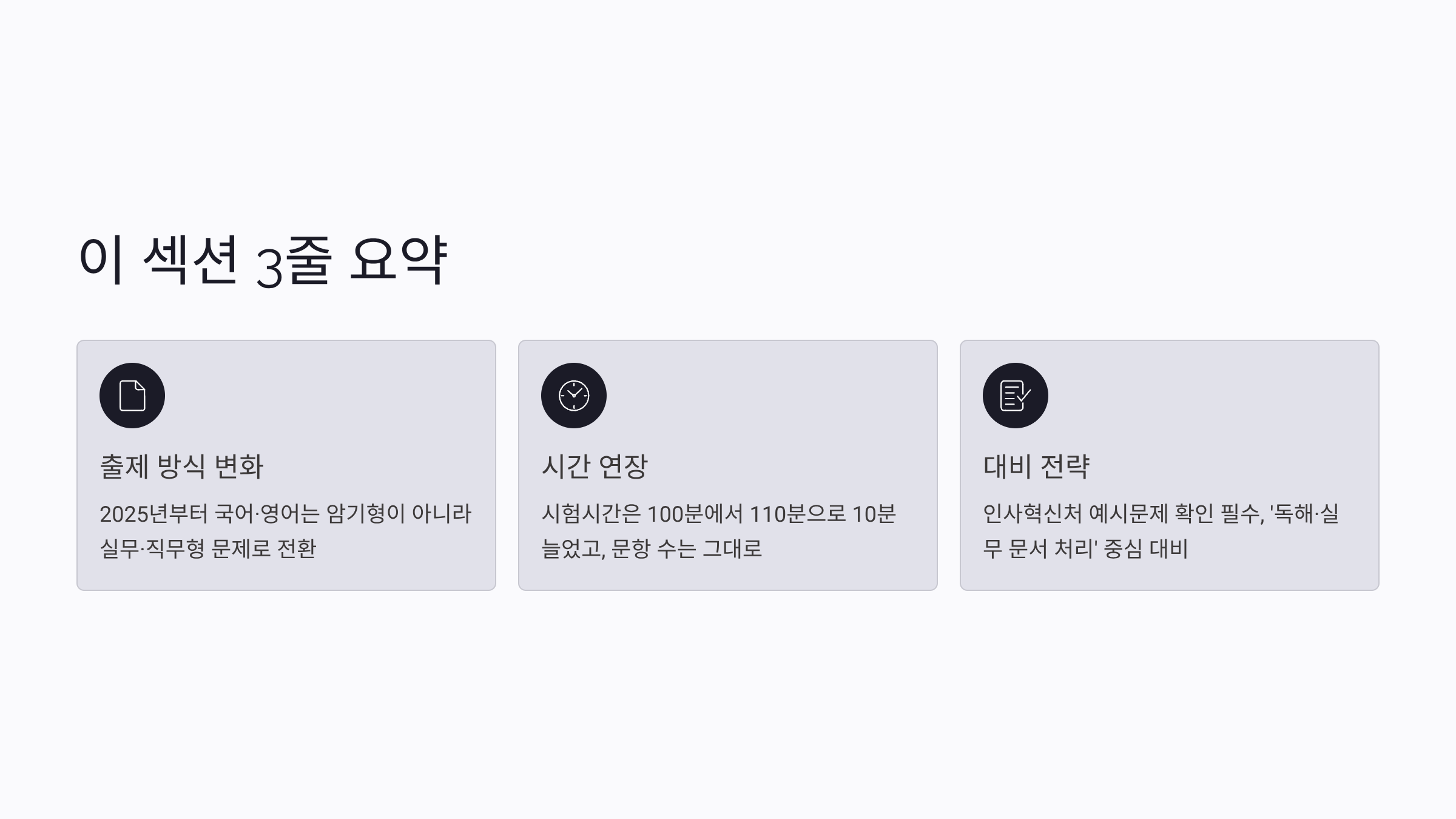 2 2025년부터 국어·영어는 '암기형'이 아니라 실무·직무형 지문 중심으로 바뀌고 시험시간도 10분 늘어났습니다.
