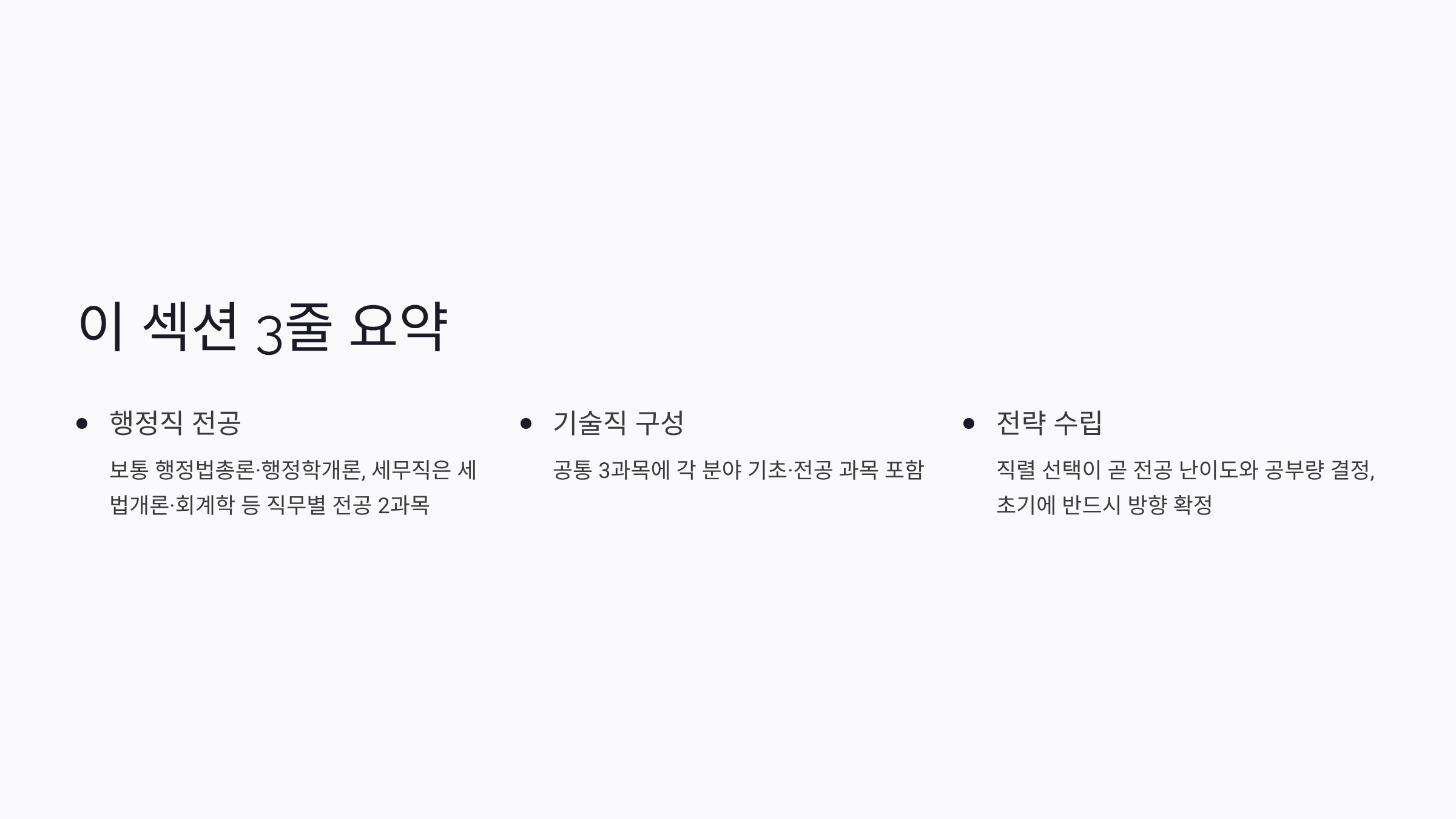 3 직렬 선택이 곧 전공 난이도와 공부량을 결정하므로, 초기에 반드시 방향을 확정해야 합니다.