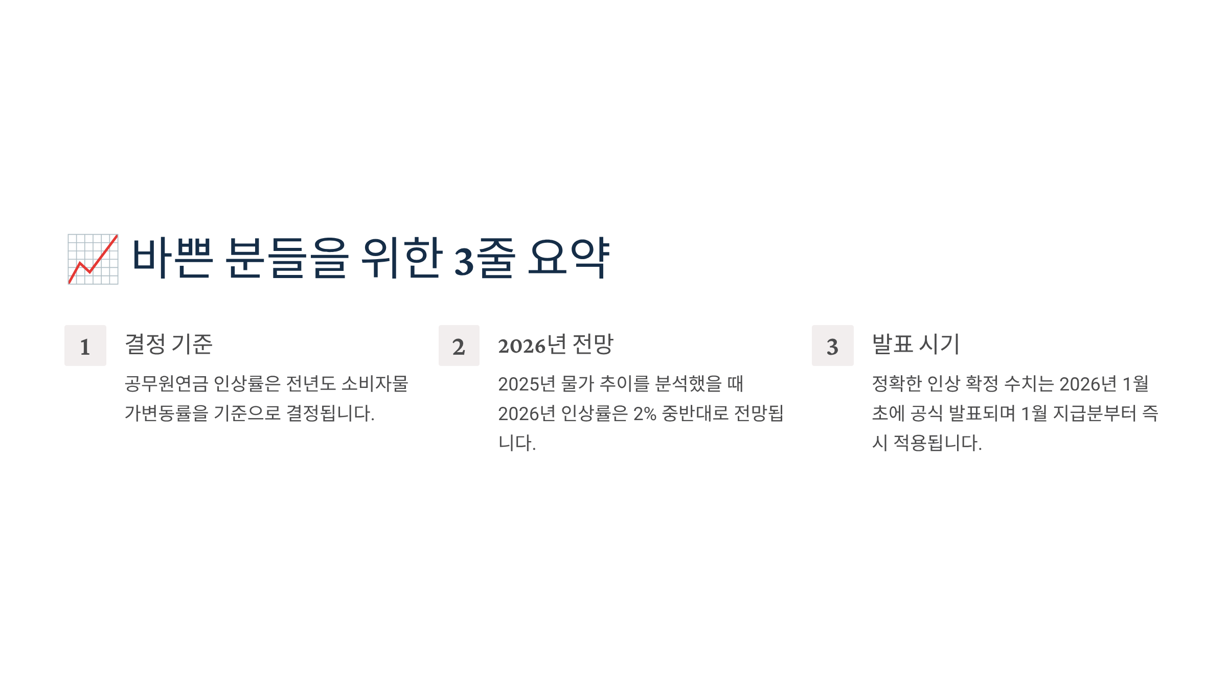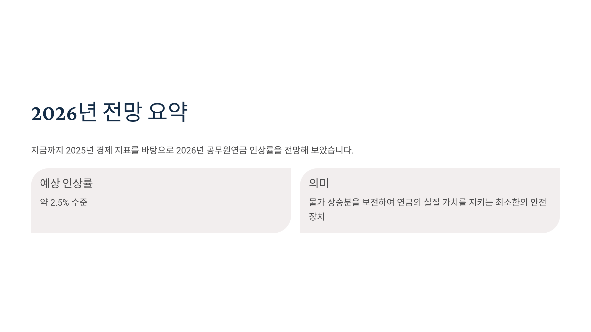2. 이에 따라 2026년 공무원연금 인상률 또한 2.5% 내외가 될 가능성이 매우 높습니다.