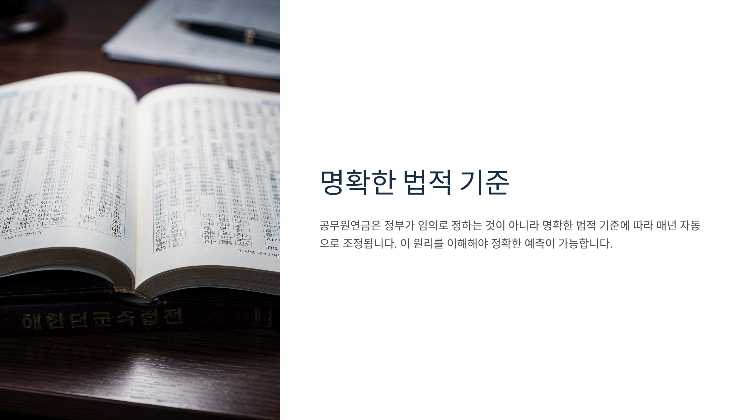 공무원연금은 정부가 임의로 정하는 것이 아니라 명확한 법적 기준에 따라 매년 자동으로 조정됩니다. 이 원리를 이해해야 정확한 예측이 가능합니다.