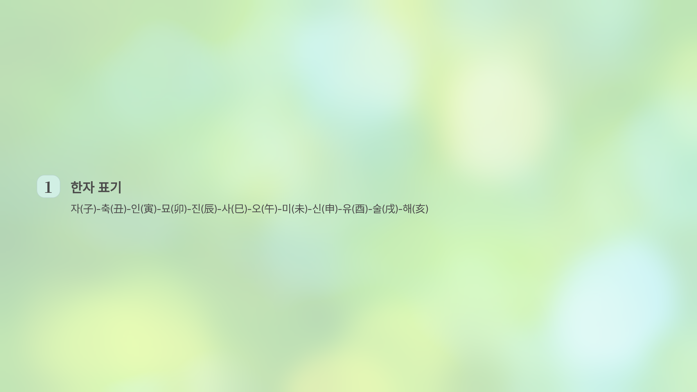 2. 한자로는 자(子)-축(丑)-인(寅)-묘(卯)-진(辰)-사(巳)-오(午)-미(未)-신(申)-유(酉)-술(戌)-해(亥)입니다.