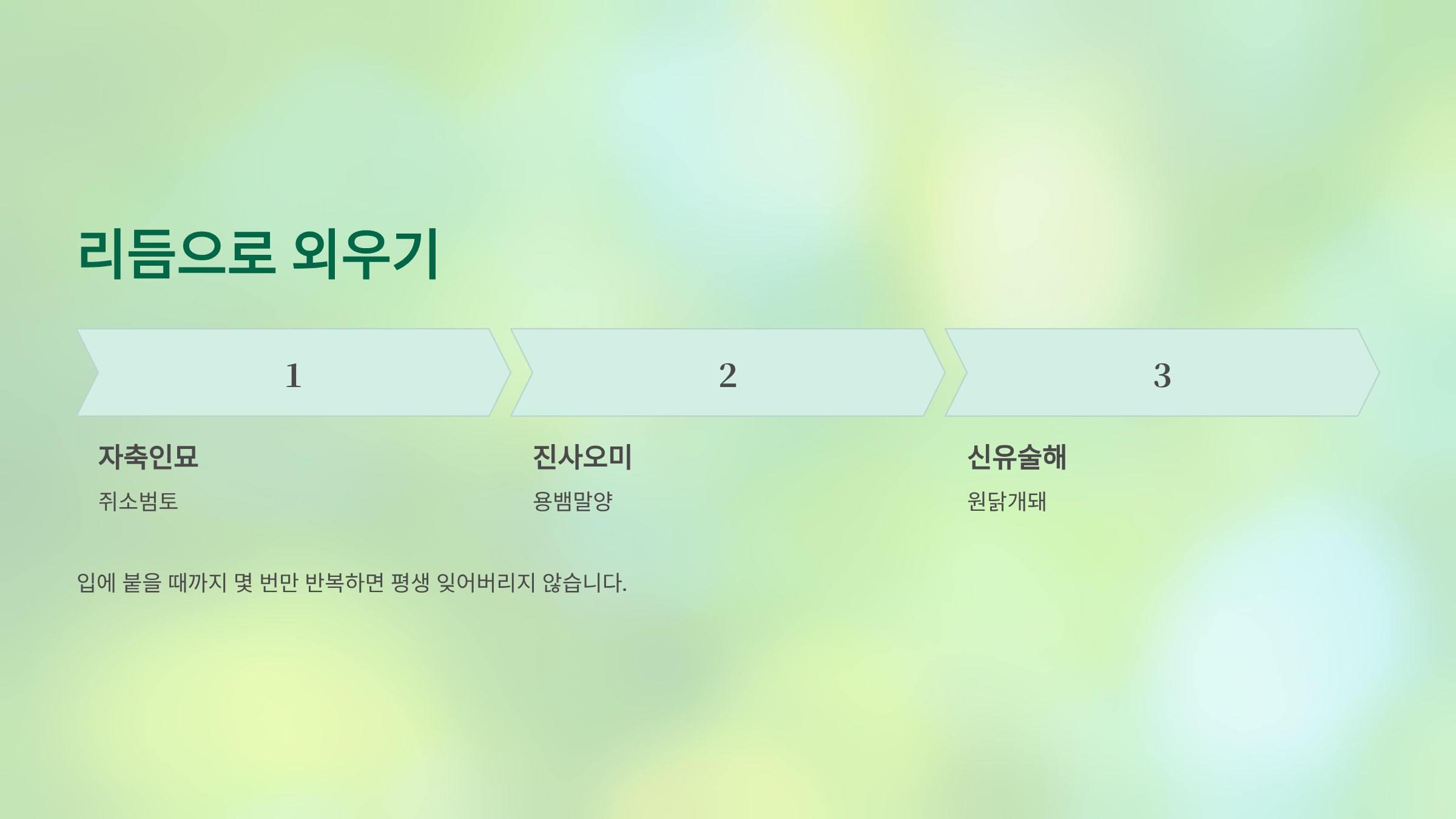 입에 붙을 때까지 몇 번만 반복하면 평생 잊어버리지 않습니다.