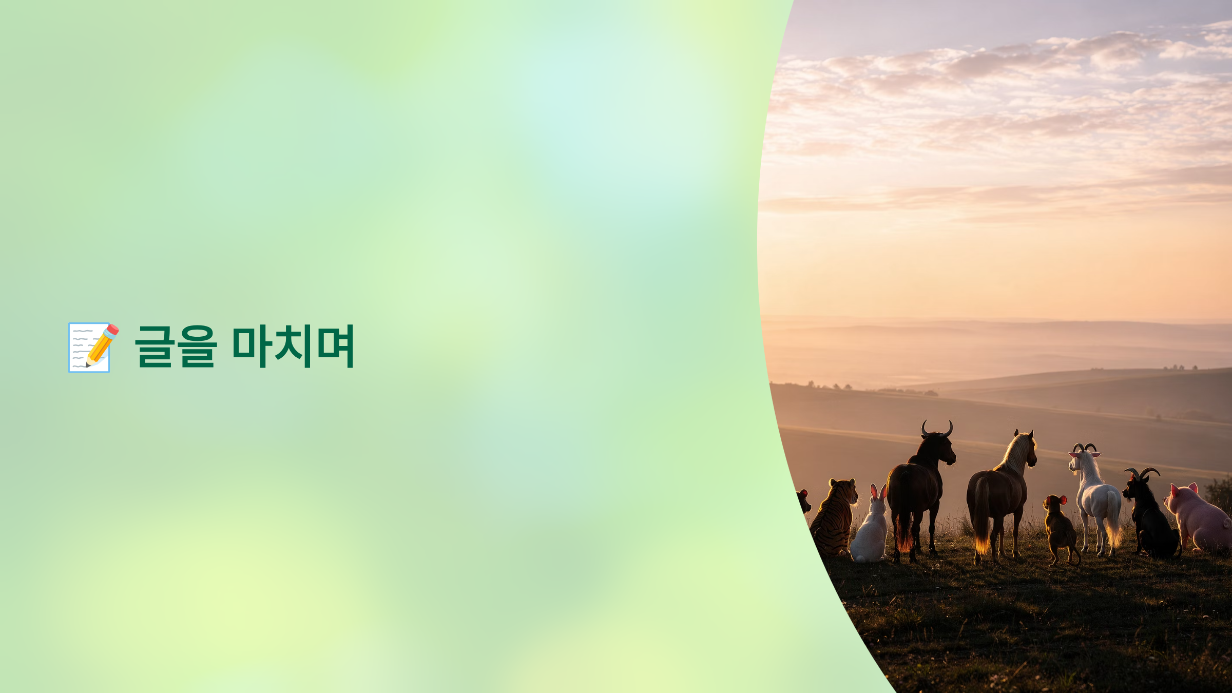 지금까지 12간지 동물의 순서와 그 속에 숨겨진 다양한 이야기들을 알아보았습니다. 쥐가 소의 등을 타고 1등을 했다는 설화는 언제 들어도 인간 세상의 축소판 같아 흥미롭습니다.