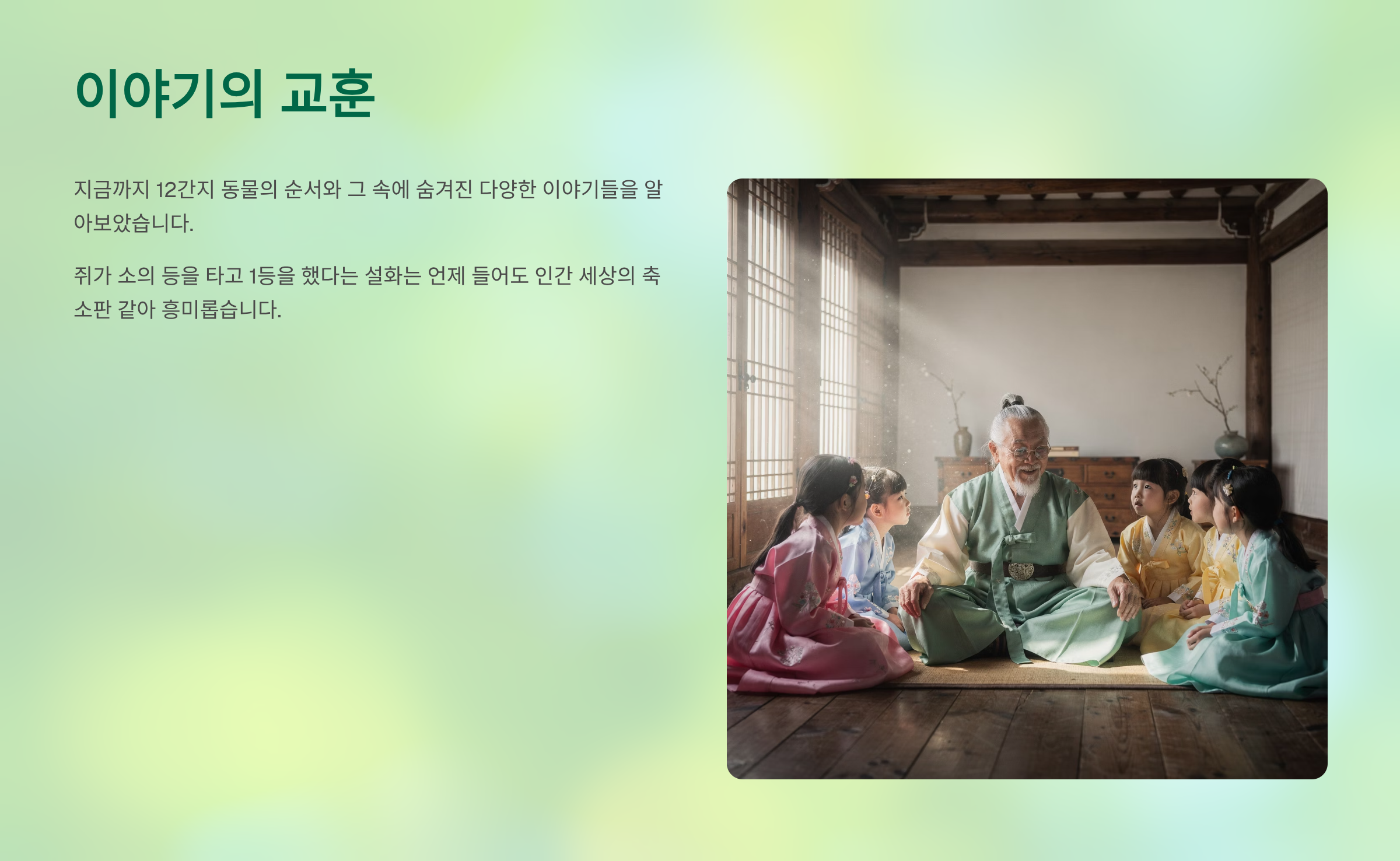 왜 하필 쥐가 1등이고, 돼지가 꼴찌일까요? 여기에는 아주 흥미로운 옛날이야기가 전해 내려옵니다.
