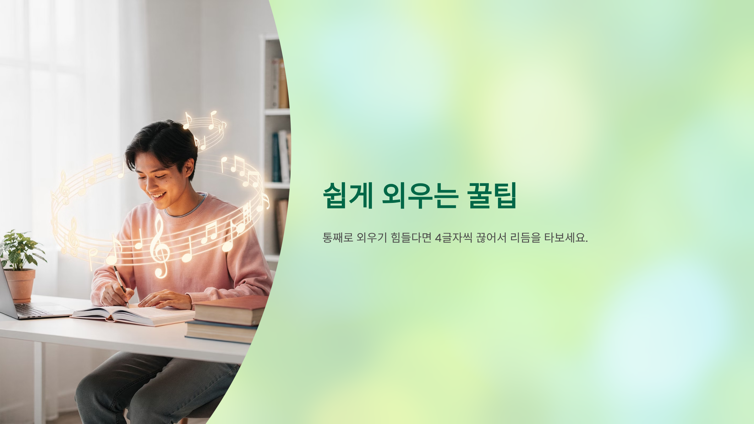 통째로 외우기 힘들다면 4글자씩 끊어서 리듬을 타보세요.