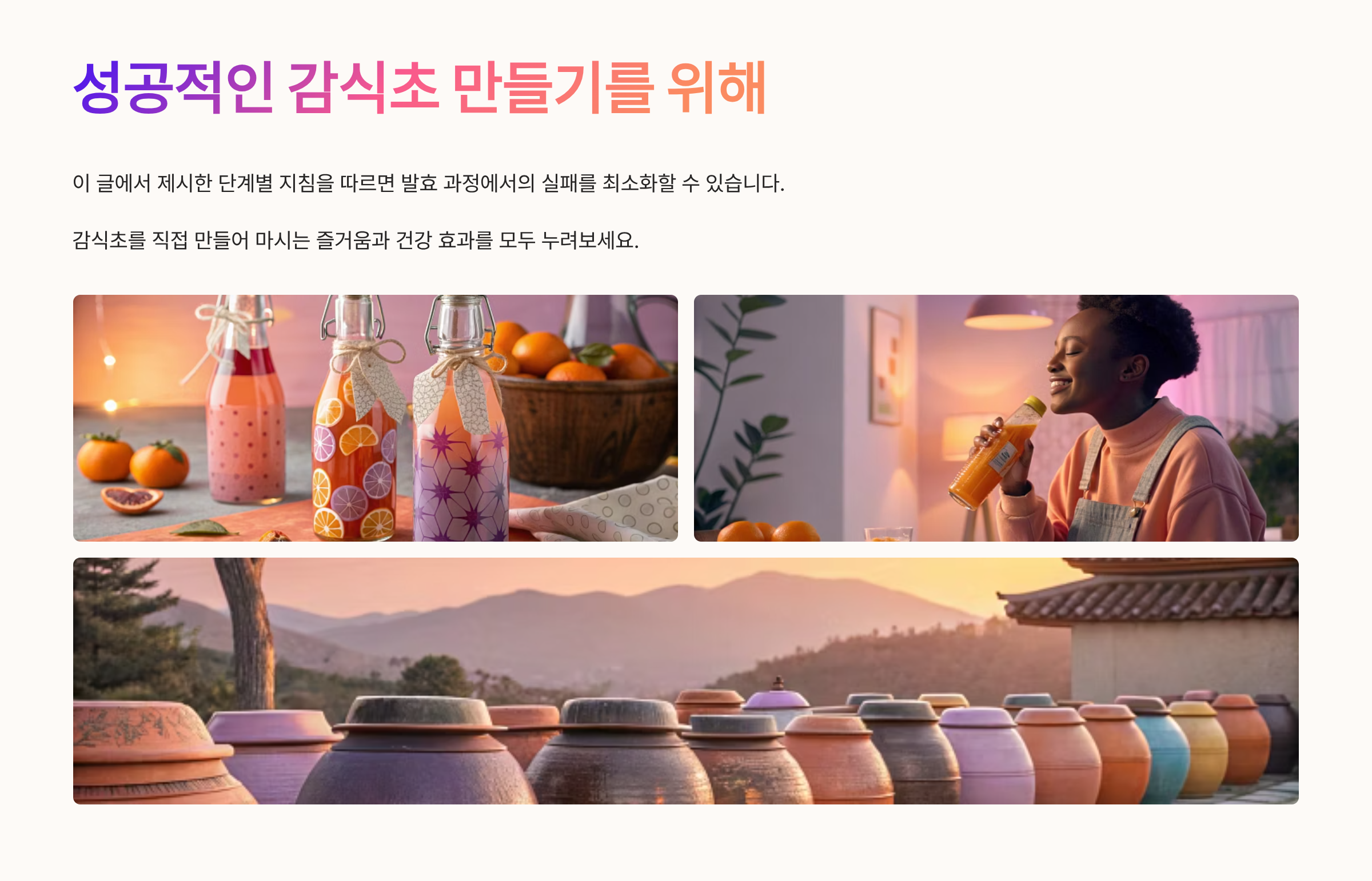 감식초는 우리 조상들이 예부터 만들어온 전통 발효식품으로, 소화를 돕고 피로회복에 효과적인 건강식초입니다. 이 글에서는 누구나 집에서 간단하게 만들 수 있는 감식초 제조 방법을 자세히 설명합니다.