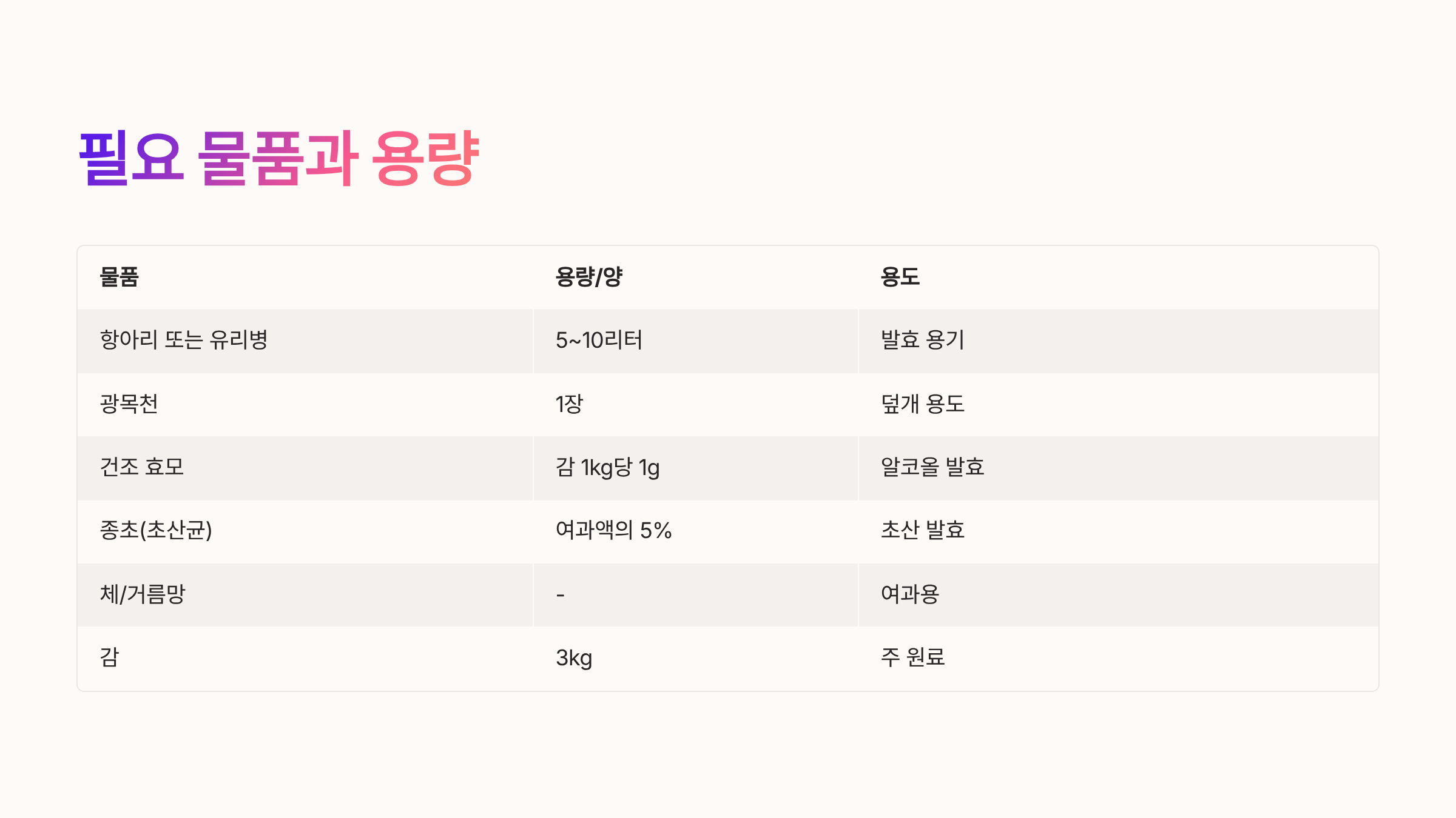 🎯 감식초 만드는데 필요한 준비물