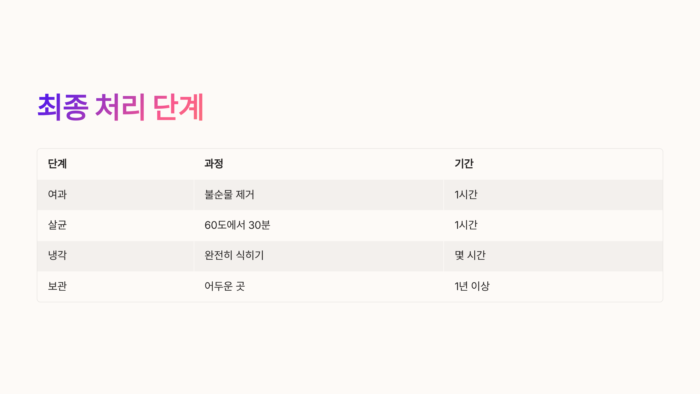 | 살균 | 60도에서 30분 | 1시간 |