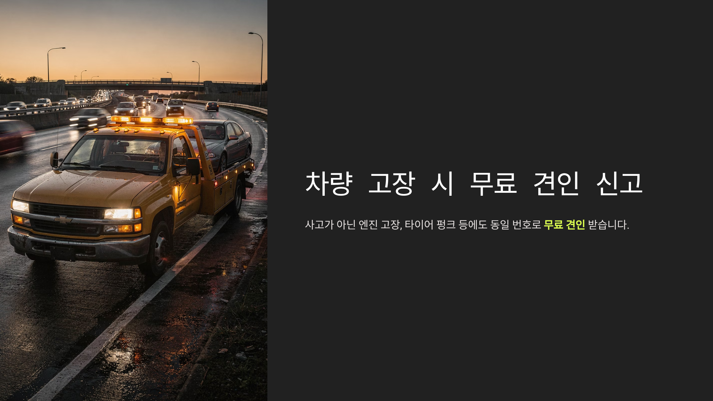 사고가 아닌 엔진 고장, 타이어 펑크 등에도 동일 번호로 무료 견인 받습니다.