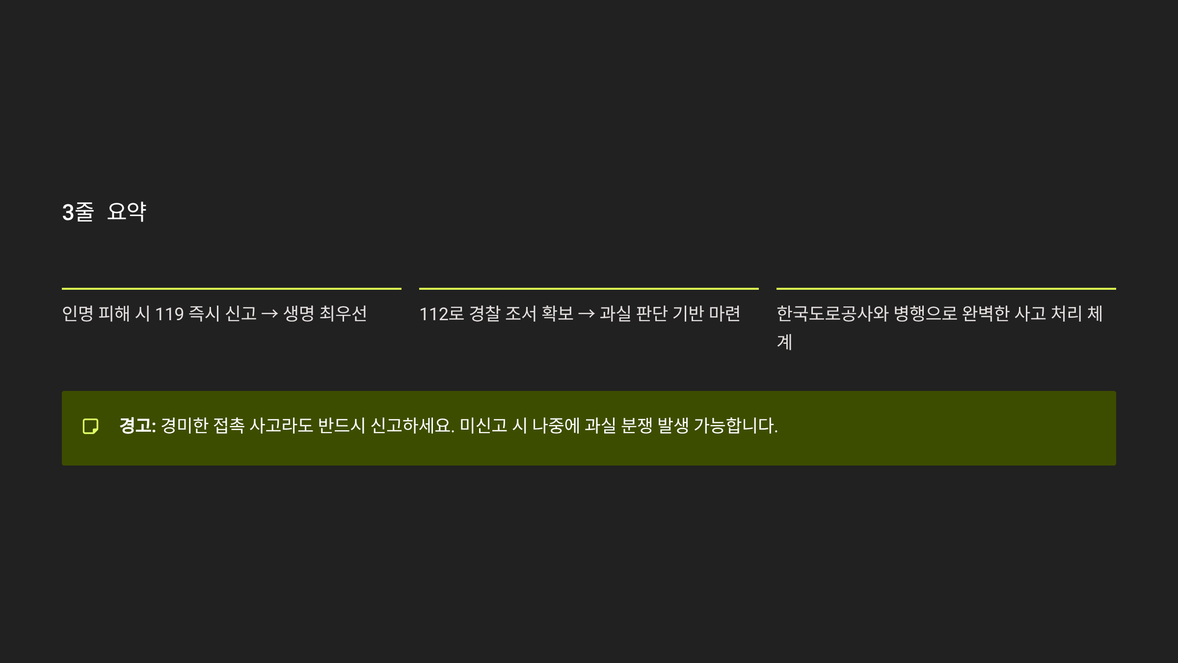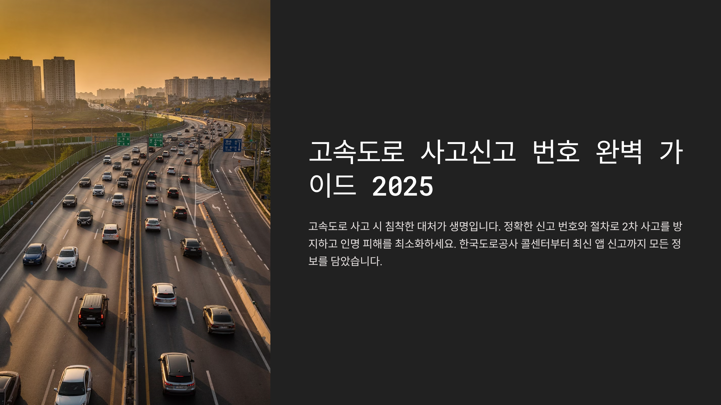 고속도로 사고 대처는 침착함과 빠른 신고가 핵심입니다. 위 가이드를 북마크해두고 안전 운전하세요.