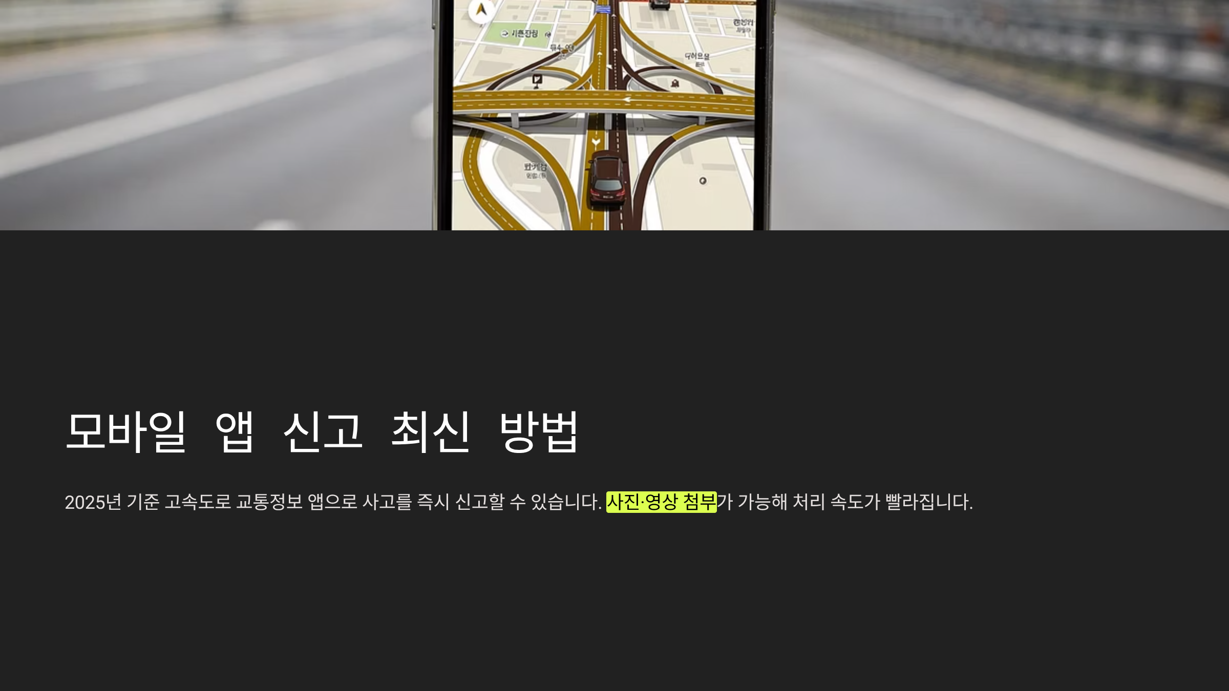 2025년 기준 고속도로 교통정보 앱으로 사고를 즉시 신고할 수 있습니다. 사진·영상 첨부가 가능해 처리 속도가 빨라집니다.