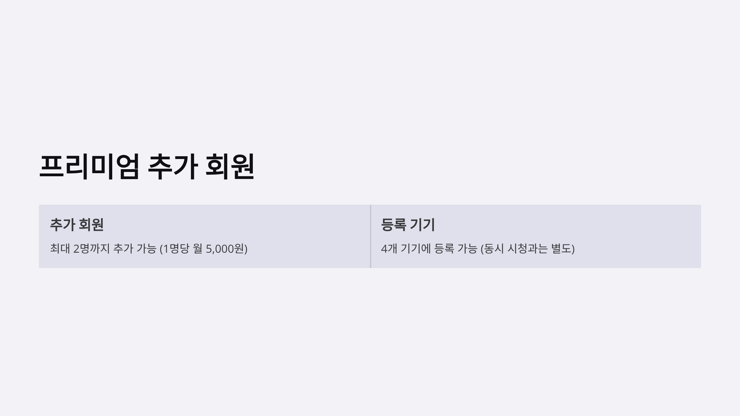추가 회원: 최대 2명까지 추가 가능(1명당 월 5,000원)
