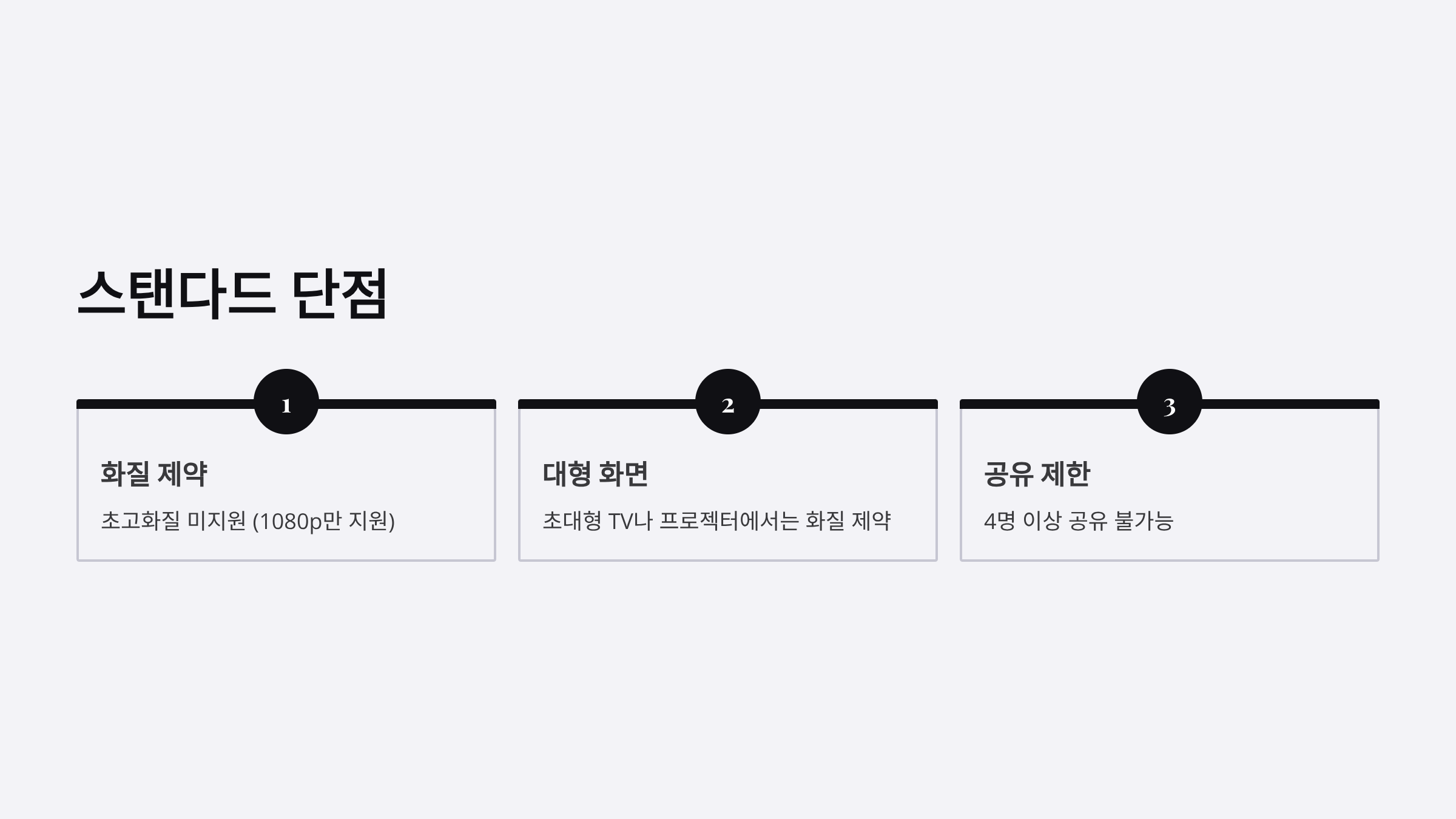 | 스탠다드 | 13,500원 | 1080p (Full HD) | 2명 | 2개 | 없음 | 1명(월 5,000원) |