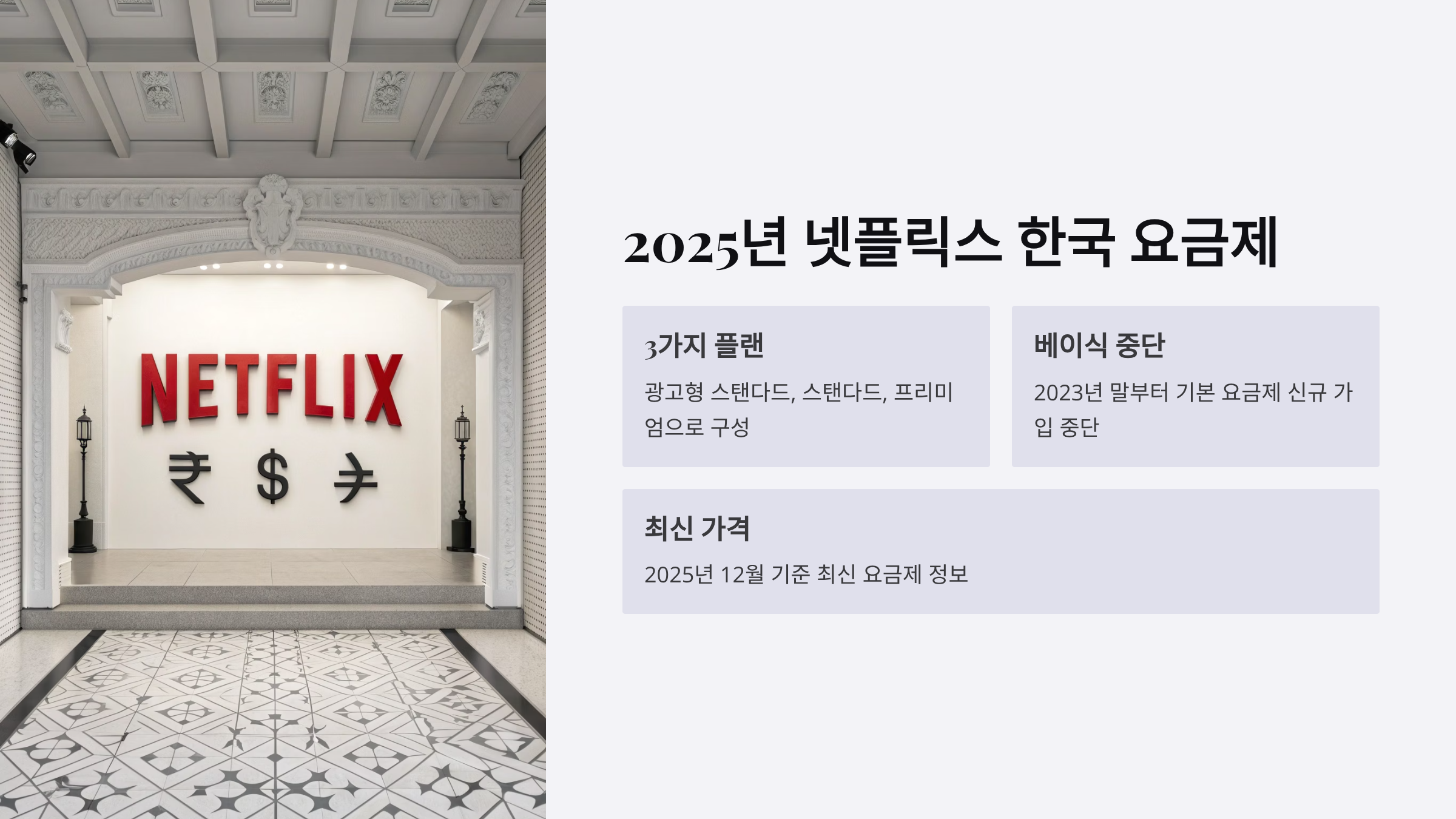 이 글에서는 2025년 12월 기준 한국 넷플릭스의 모든 요금제를 세부 분석하고, 각 플랜별 특징과 추천 대상, 그리고 실제로 더 싸게 이용하는 방법까지 한 번에 정리해드립니다. 자신에게 딱 맞는 플랜을 찾아 스마트하게 넷플릭스를 즐겨보세요.