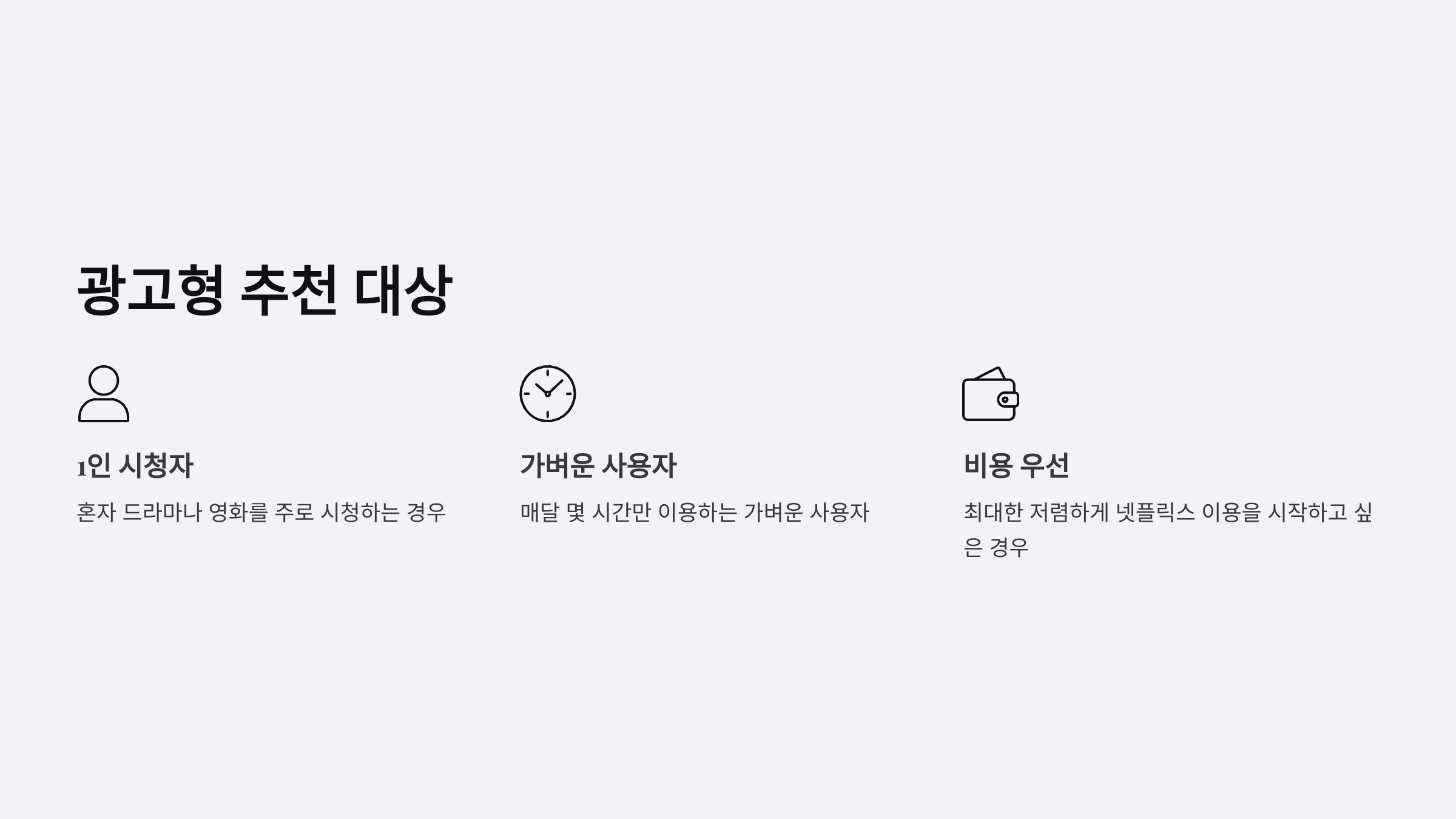 - 무광고 시청 선호자: 광고 없이 콘텐츠에 집중하고 싶은 경우