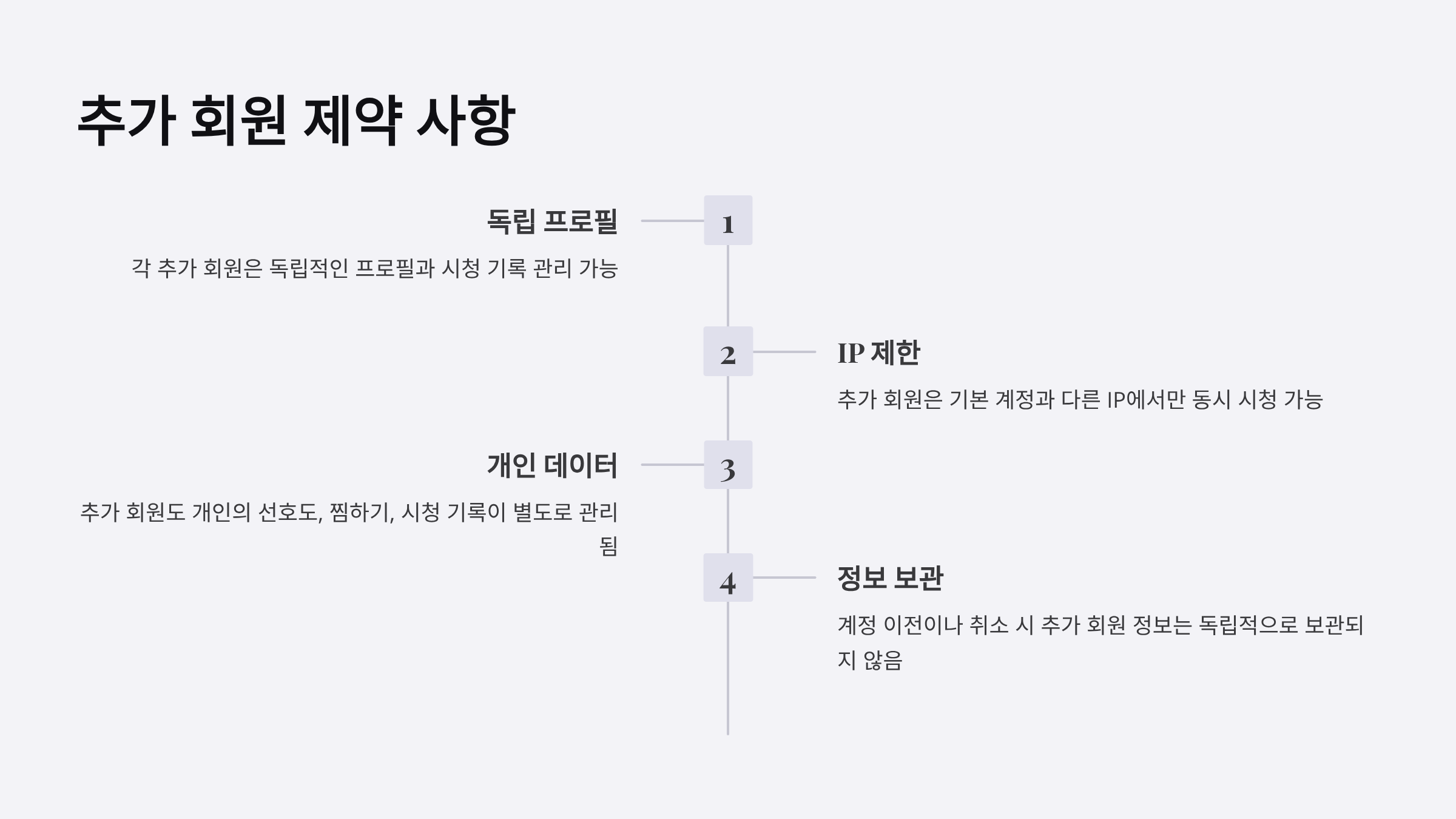 - 각 추가 회원은 독립적인 프로필과 시청 기록 관리 가능