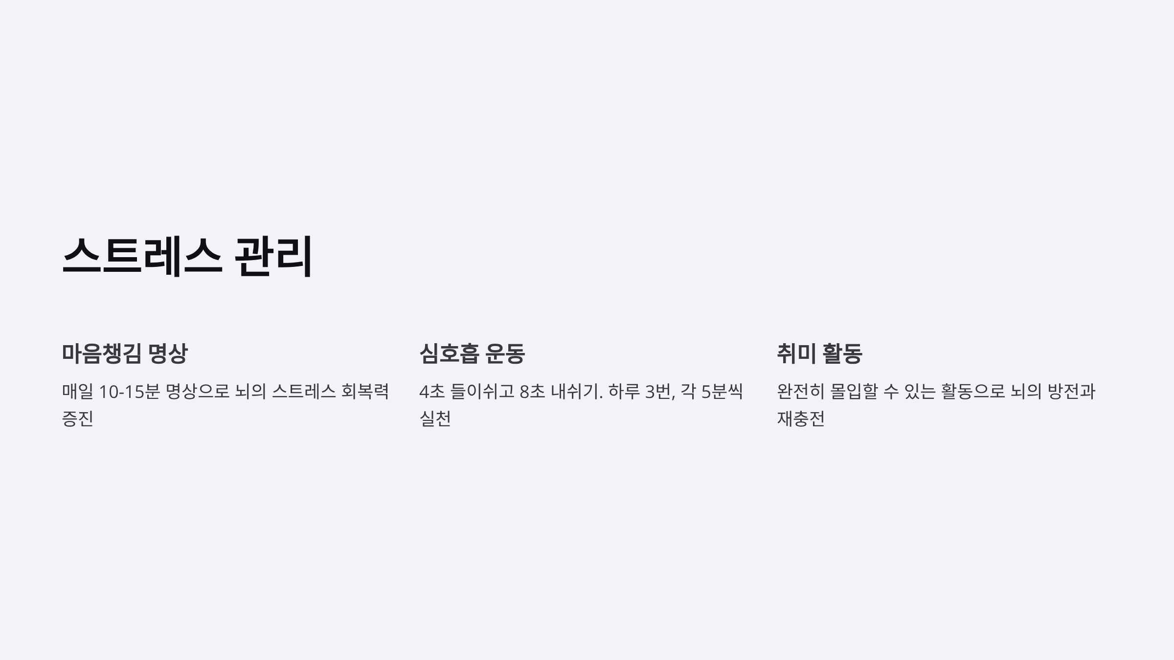 - 4초 들이쉬고 8초 내쉬기 (자율신경 안정화)