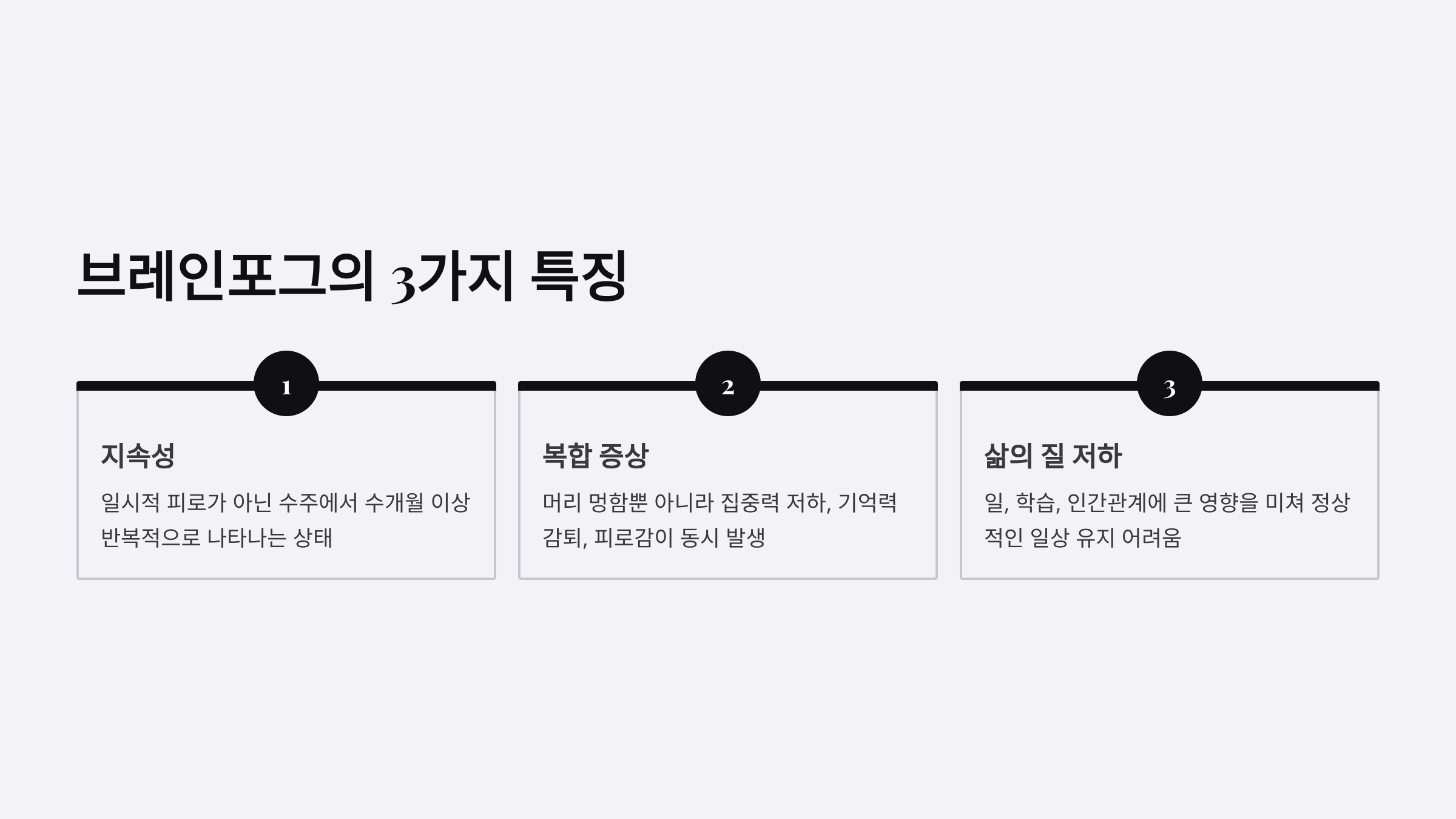 브레인포그는 단순한 피로나 졸음과는 다릅니다. 다음의 특징을 가집니다.
