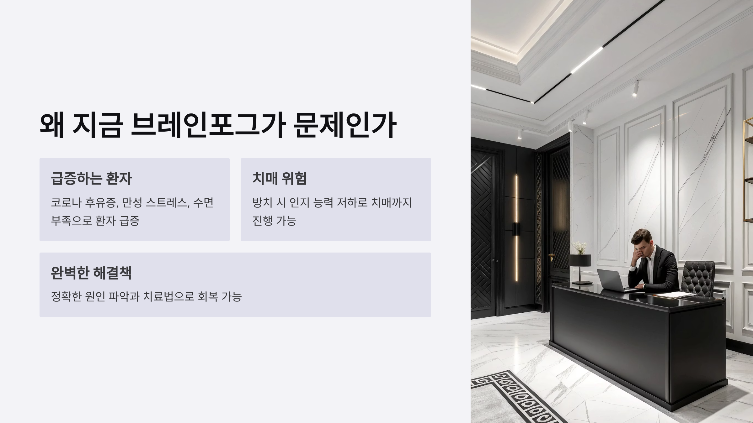 머리가 멍하고 맑지 않은 증상은 단순한 피로가 아니라 신체의 신호입니다. 이를 무시하고 방치하면 인지 능력이 점진적으로 떨어져 결국 치매로까지 진행될 수 있습니다.