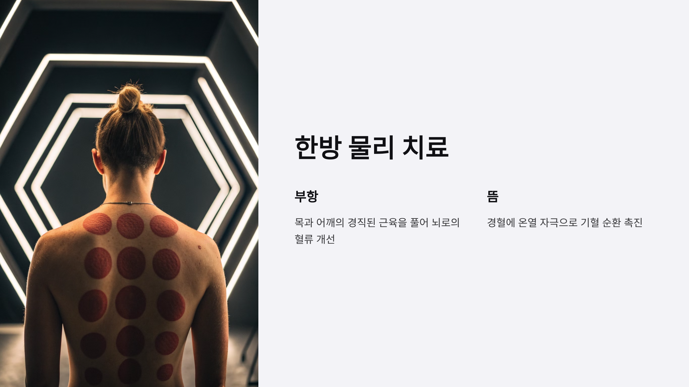 - 부항: 목과 어깨의 경직된 근육을 풀어 뇌로의 혈류 개선