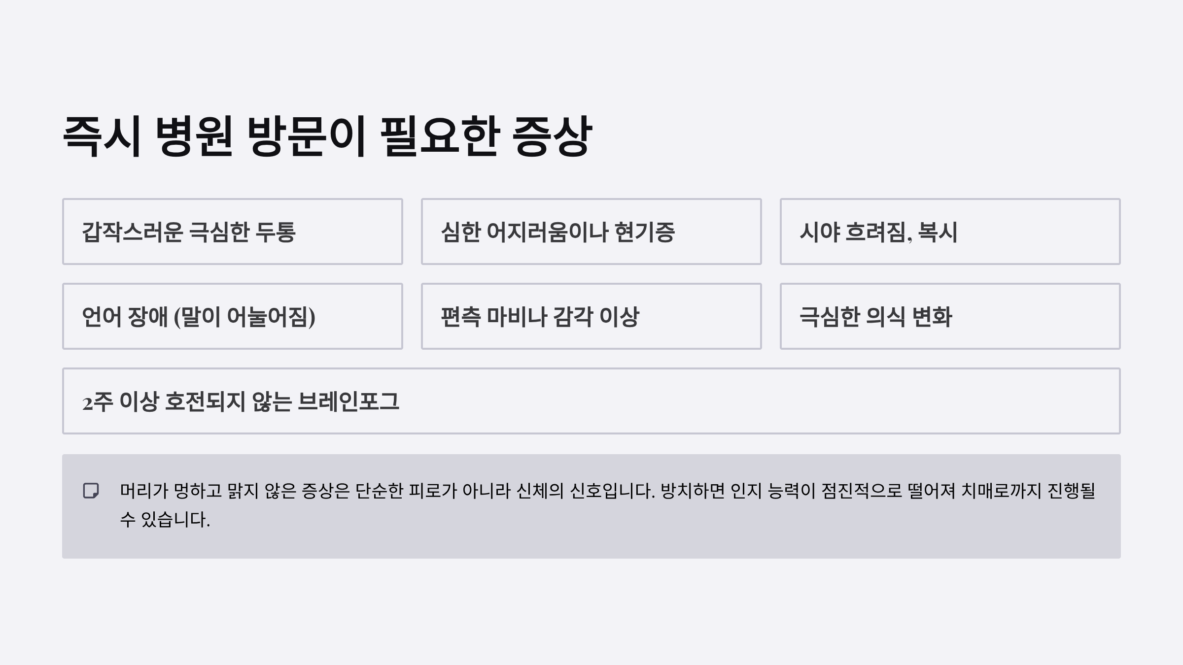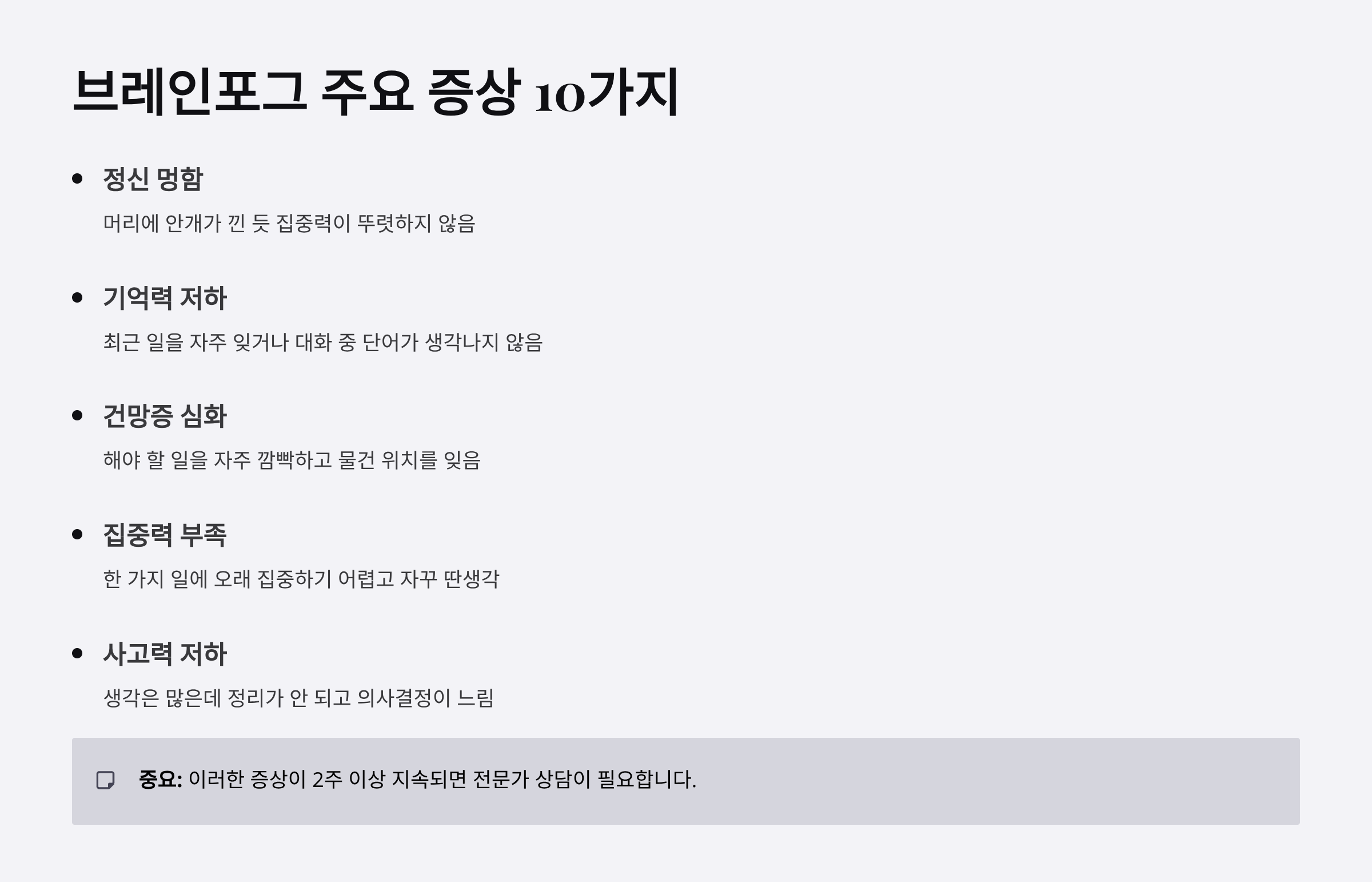 - 브레인포그가 2주 이상 호전되지 않음