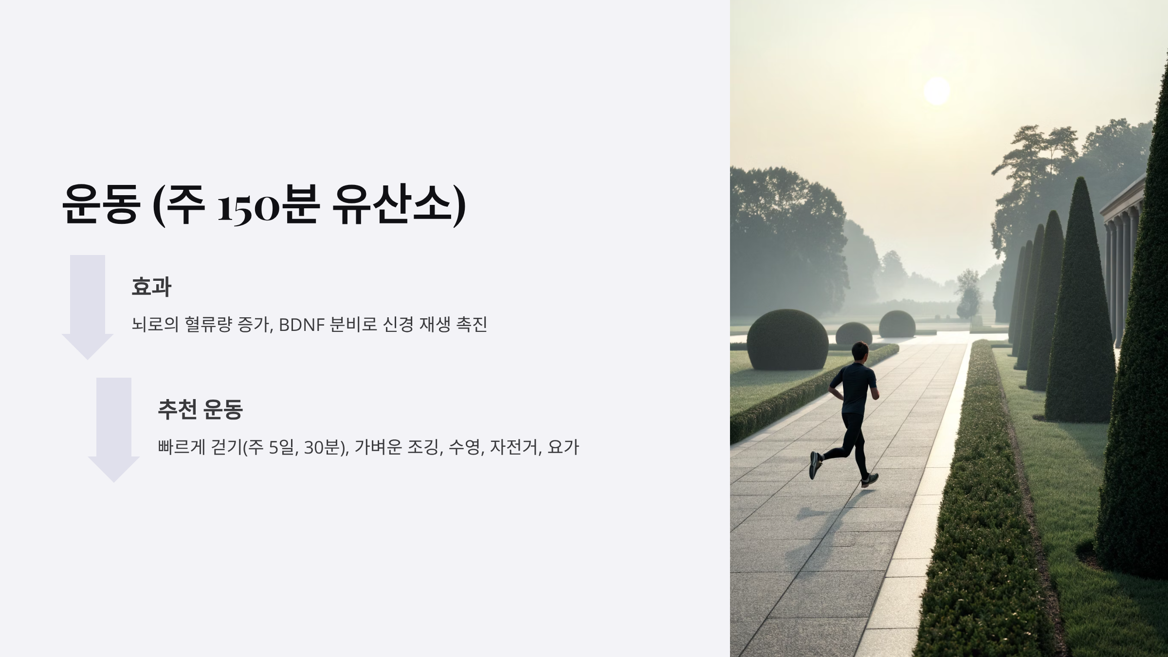 - 효과: 뇌의 신경가소성을 증대시켜 인지 기능 회복