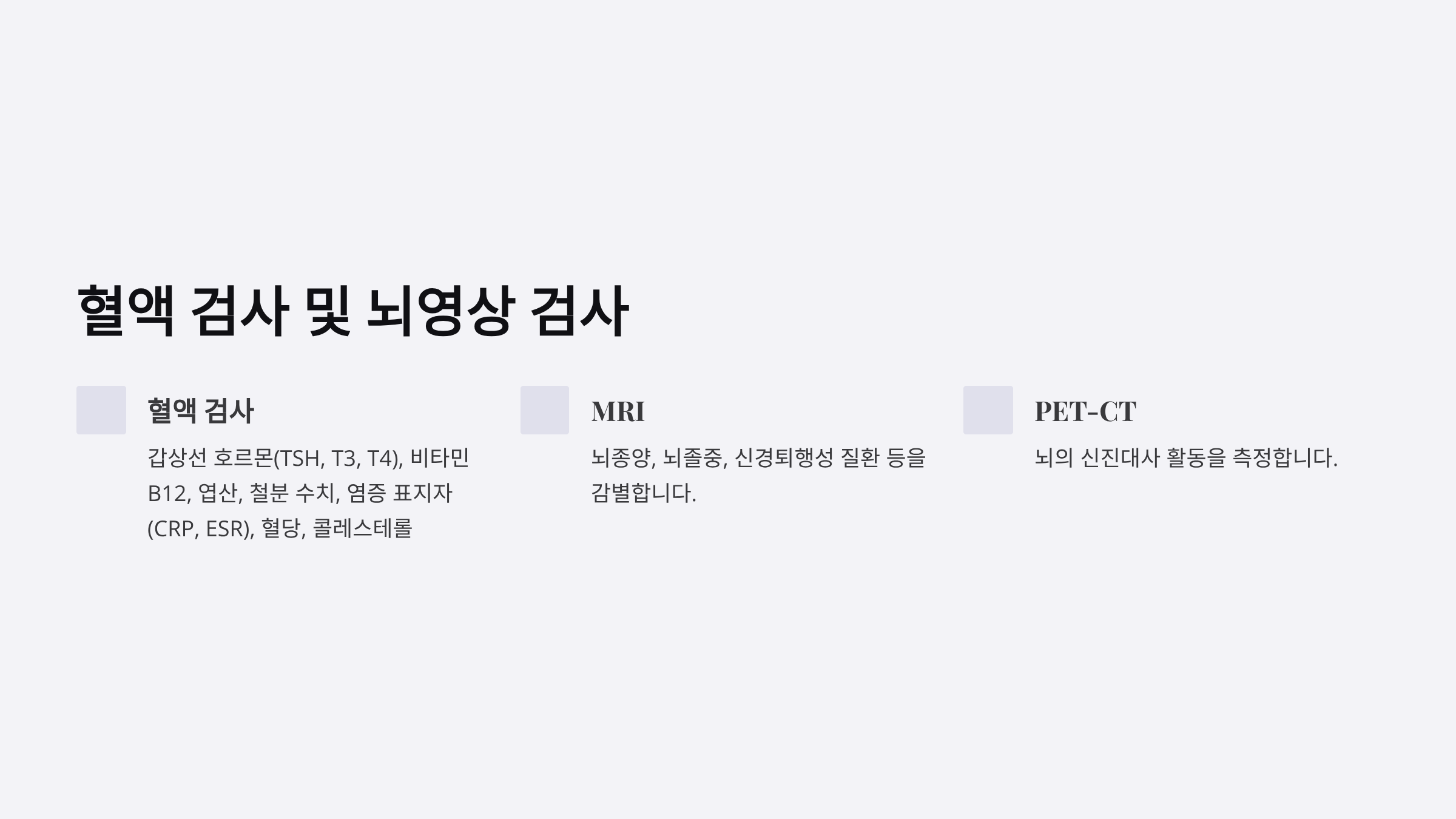 의료기관에서 브레인포그를 진단하기 위해 다음 검사들을 시행합니다.