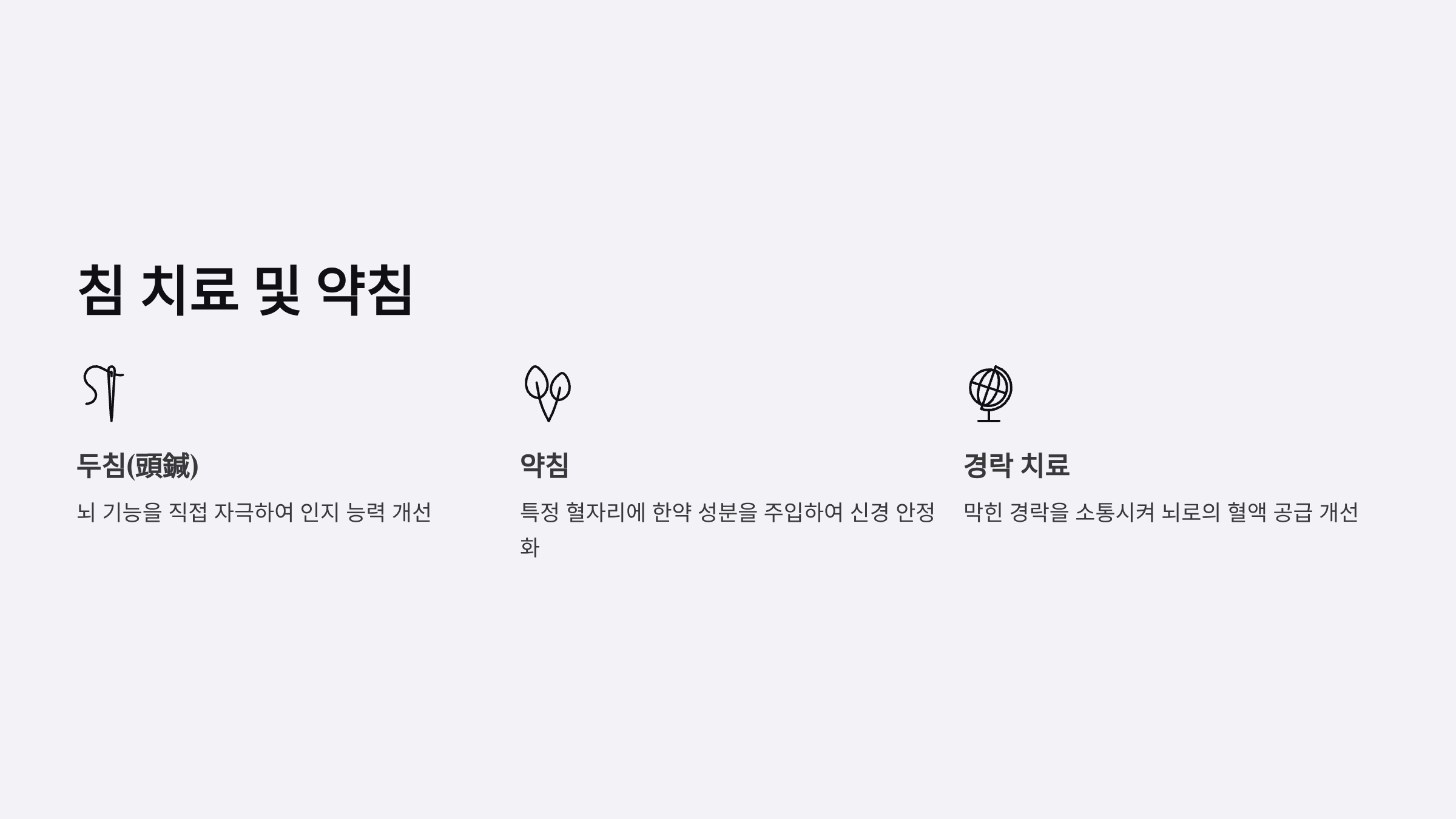 - 두침(頭鍼): 뇌 기능을 직접 자극