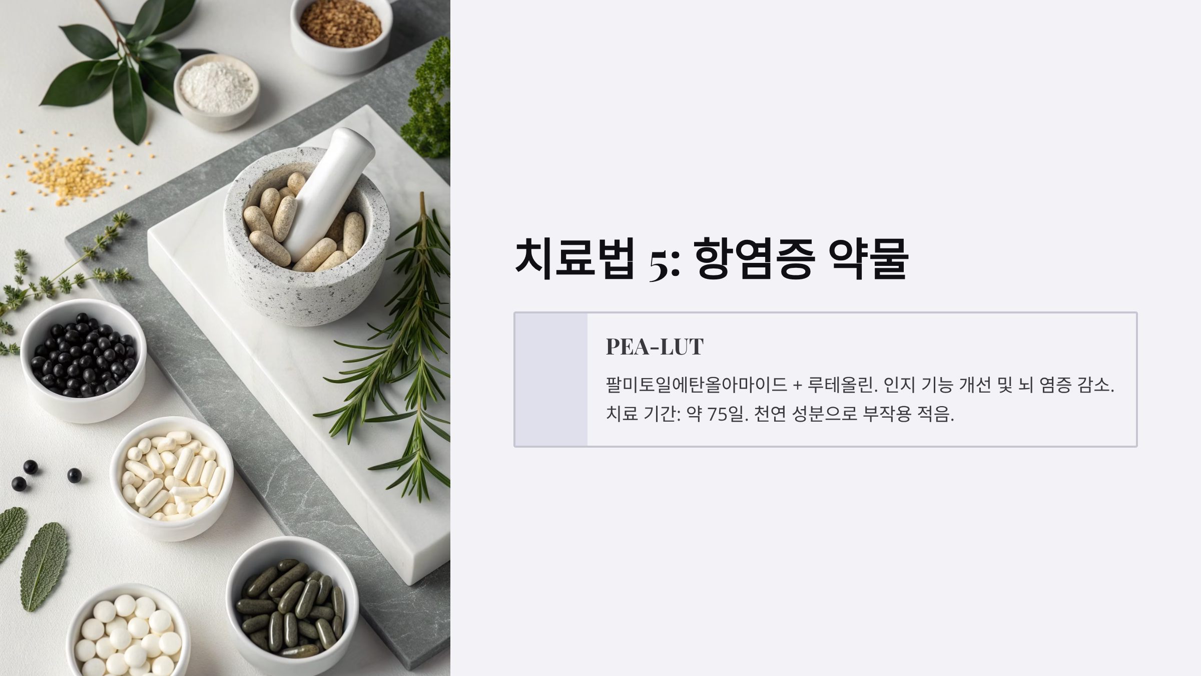 - 효과: 인지 기능 개선 및 뇌 염증 감소