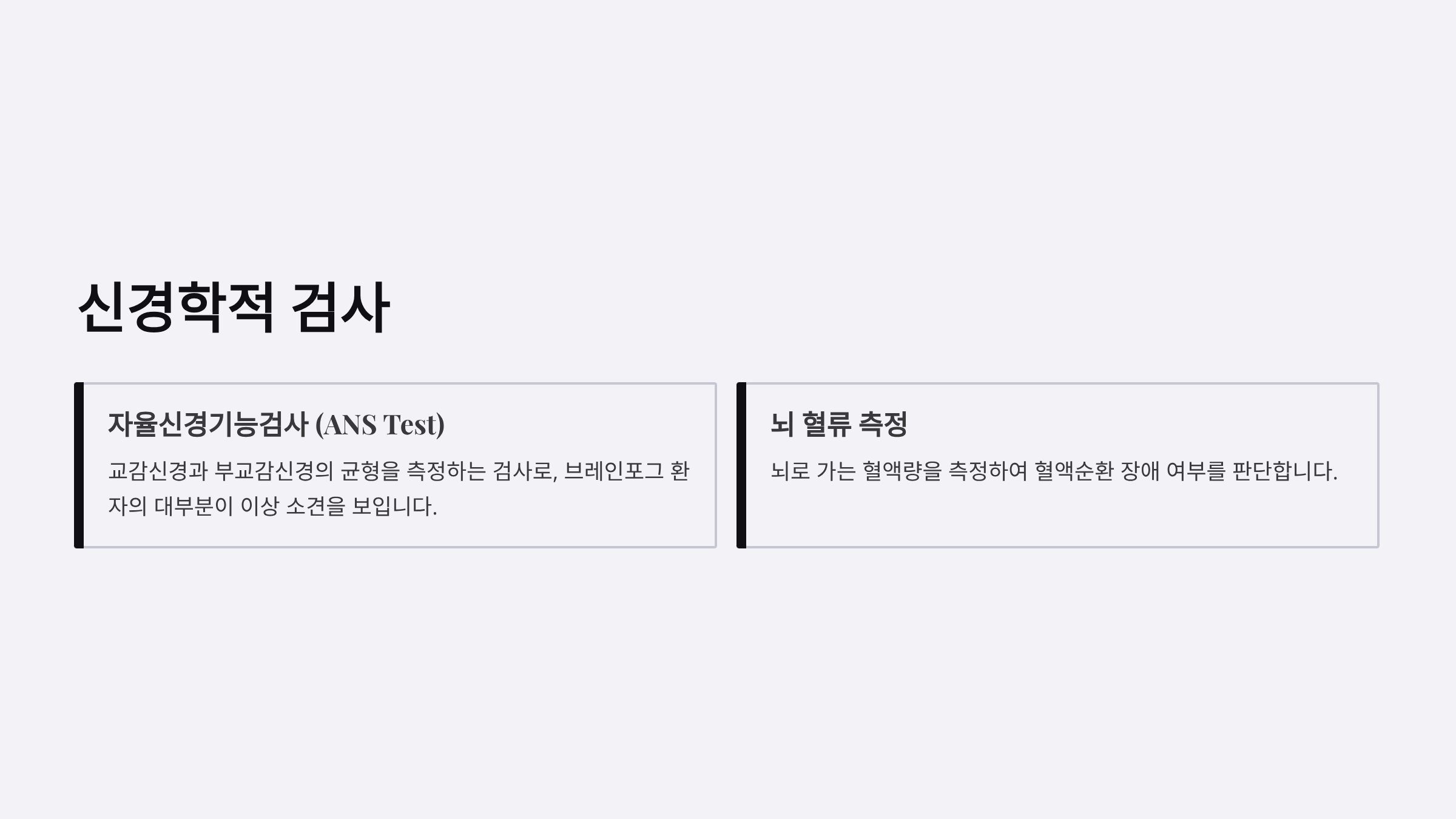 자율신경기능검사(ANS Test): 교감신경과 부교감신경의 균형을 측정하는 검사로, 브레인포그 환자의 대부분이 이상 소견을 보입니다.