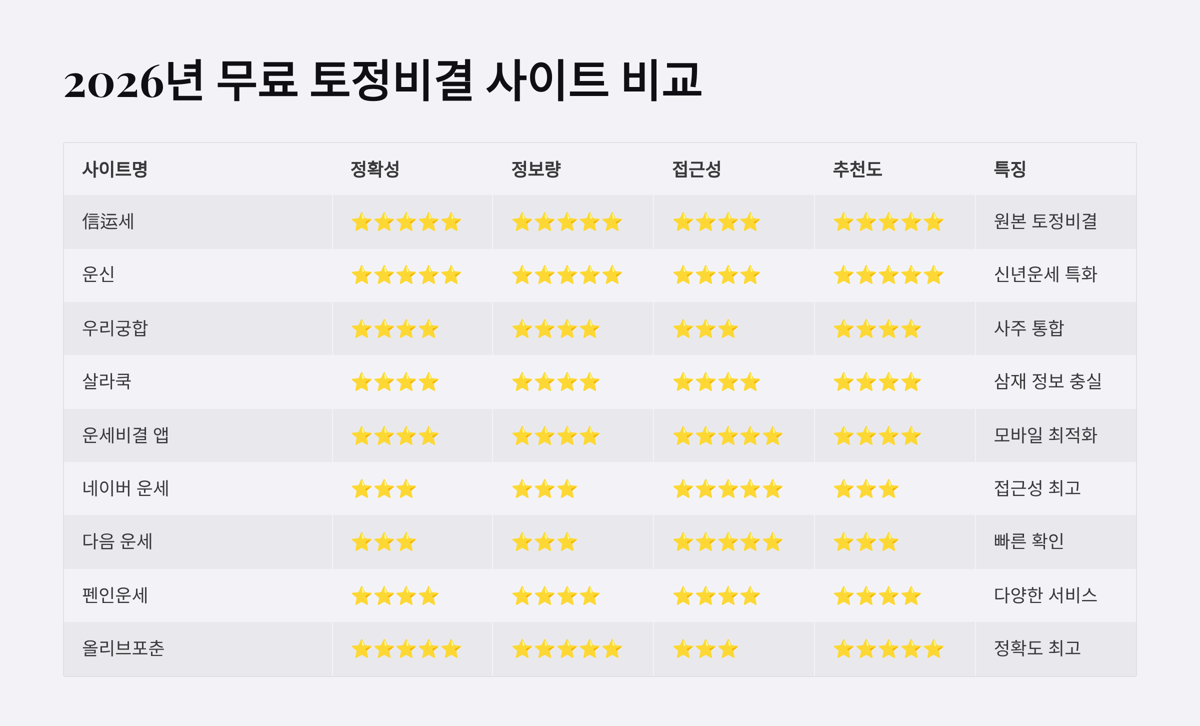 3. 2026년 무료 토정비결 사이트 비교표