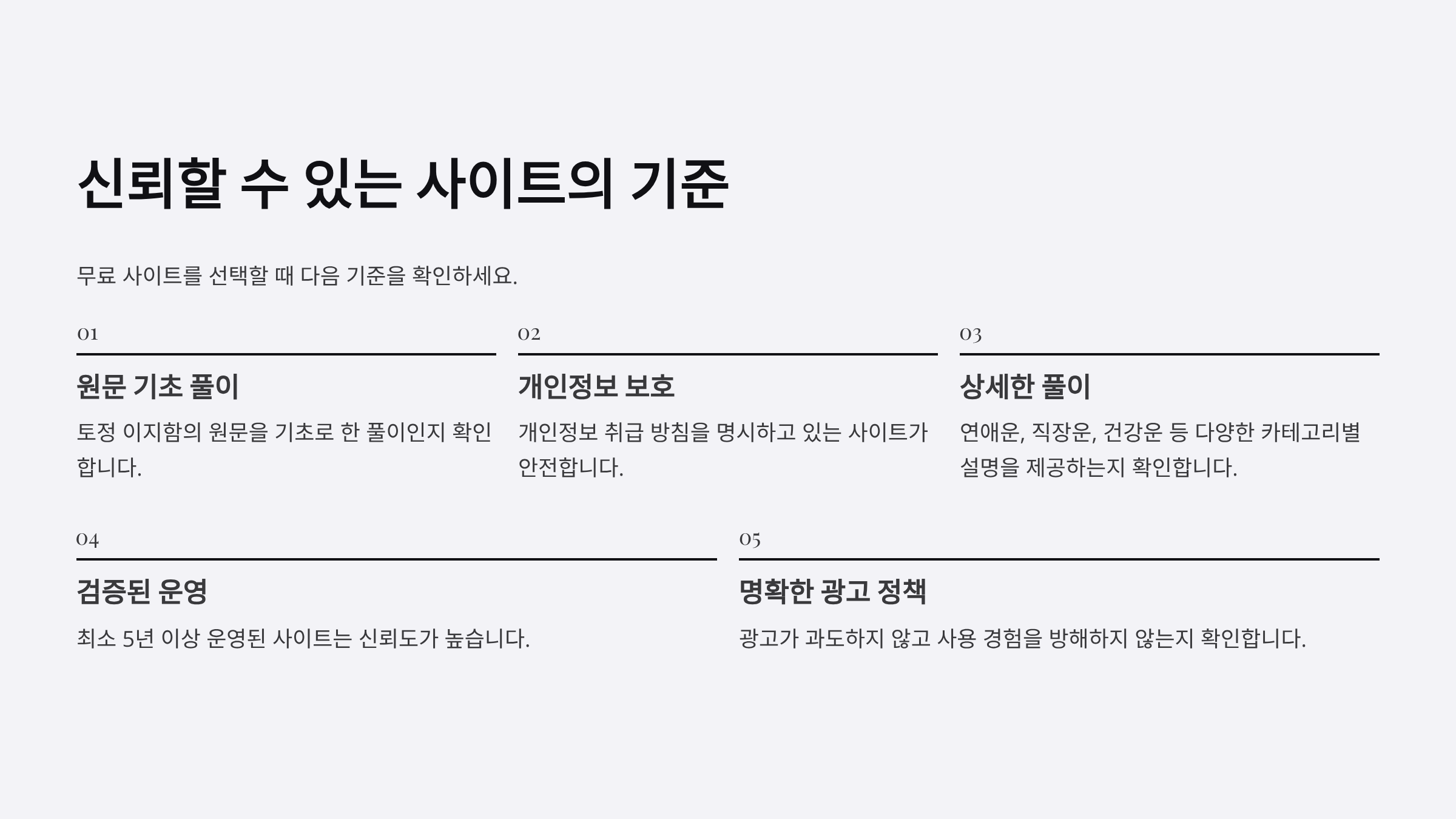 신뢰할 수 있는 토정비결 사이트의 기준