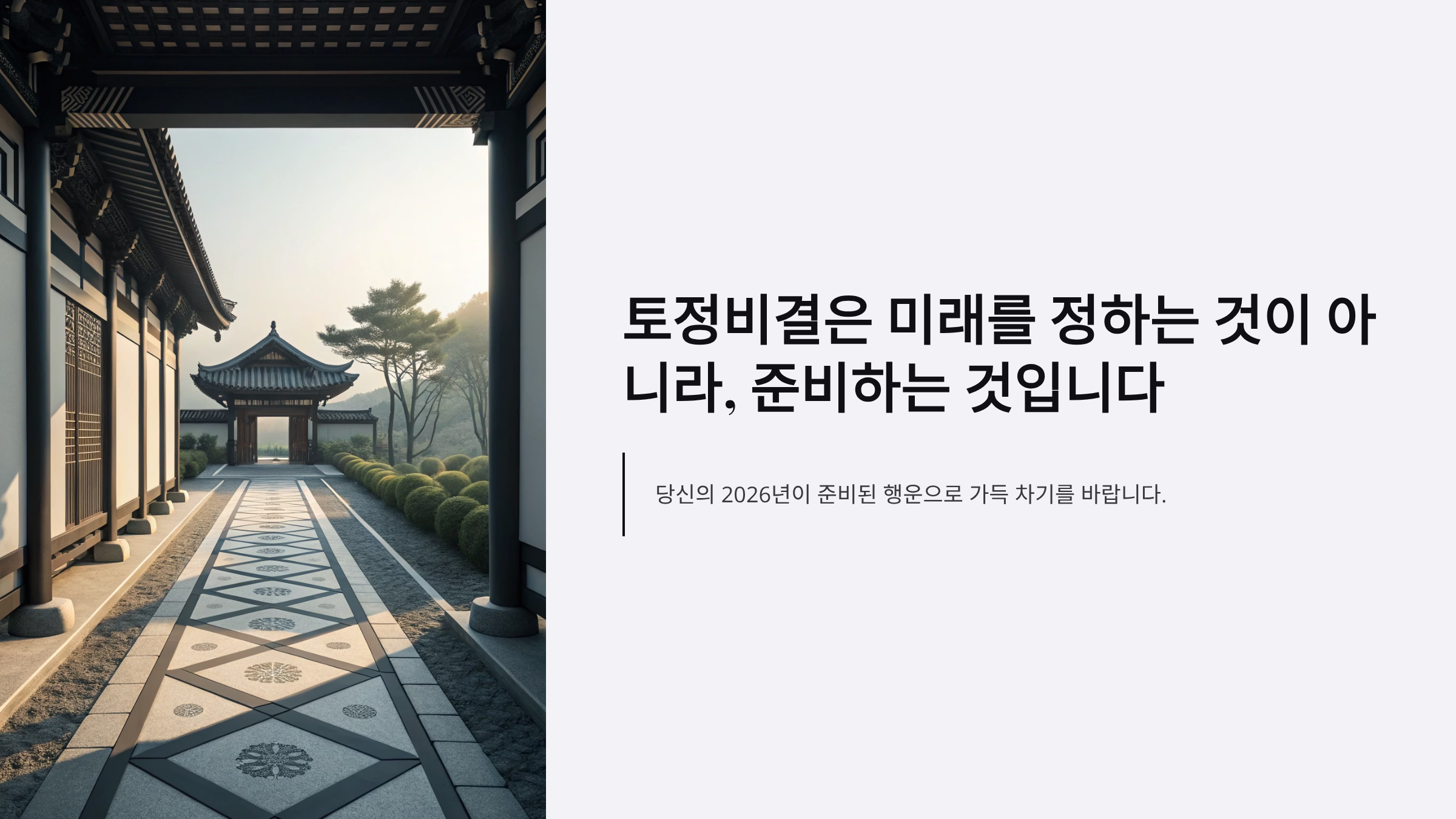 토정비결은 미래를 정하는 것이 아니라, 준비하는 것입니다. 당신의 2026년이 준비된 행운으로 가득 차기를 바랍니다.