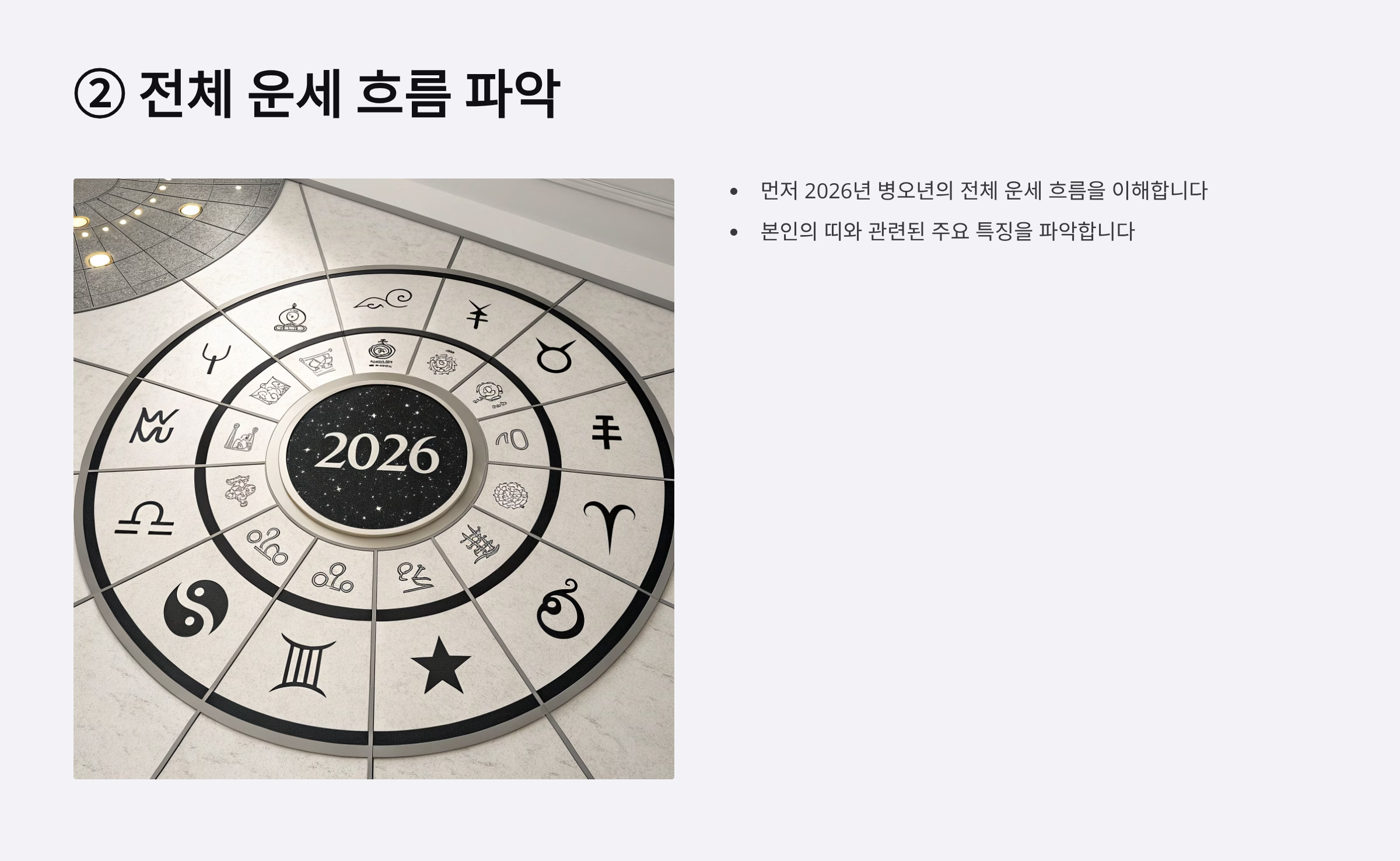 - 먼저 2026년 병오년의 전체 운세 흐름을 이해합니다