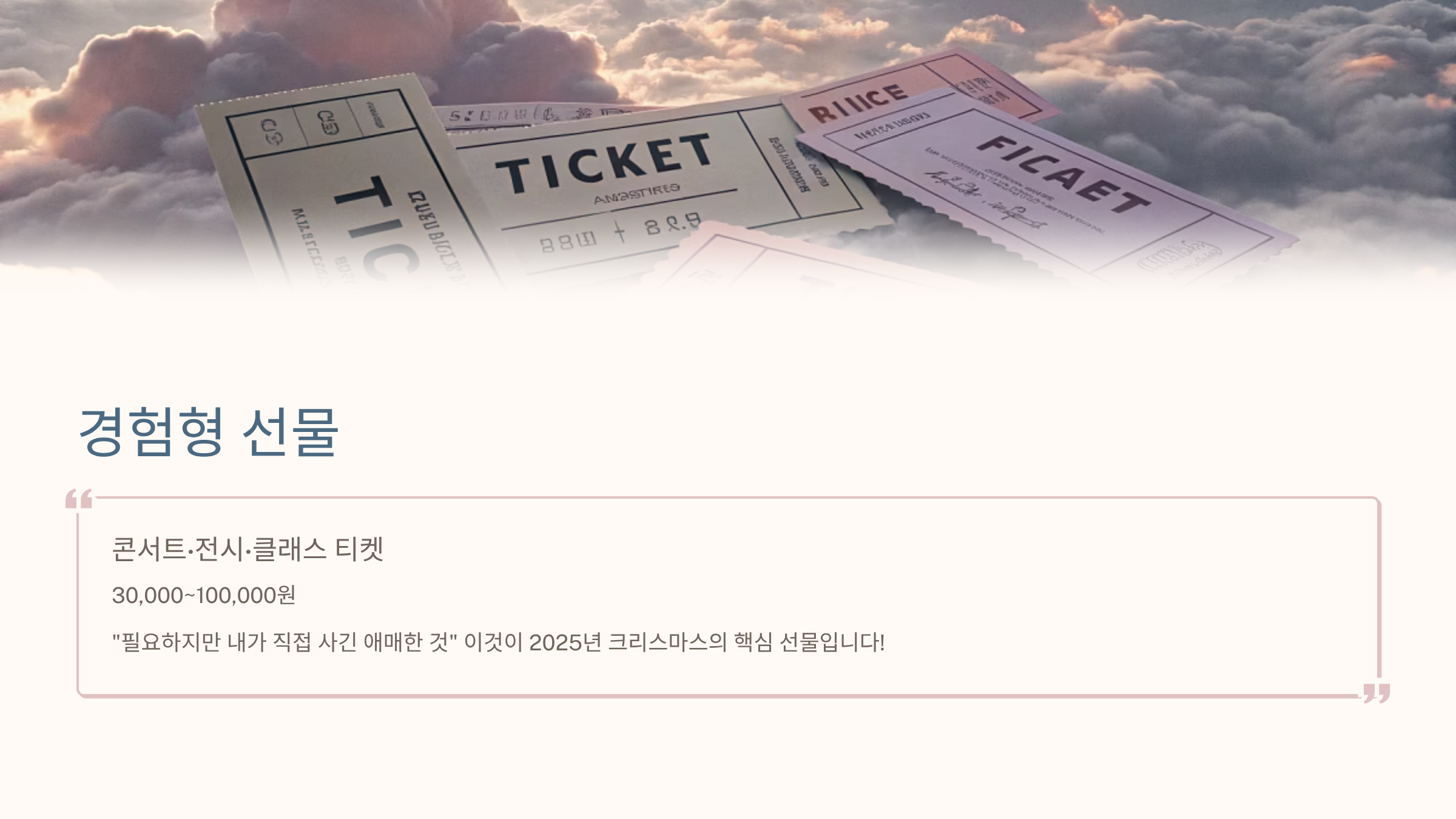 ▸ 경험형 선물 (콘서트·전시·클래스 티켓) (30,000~100,000원)
