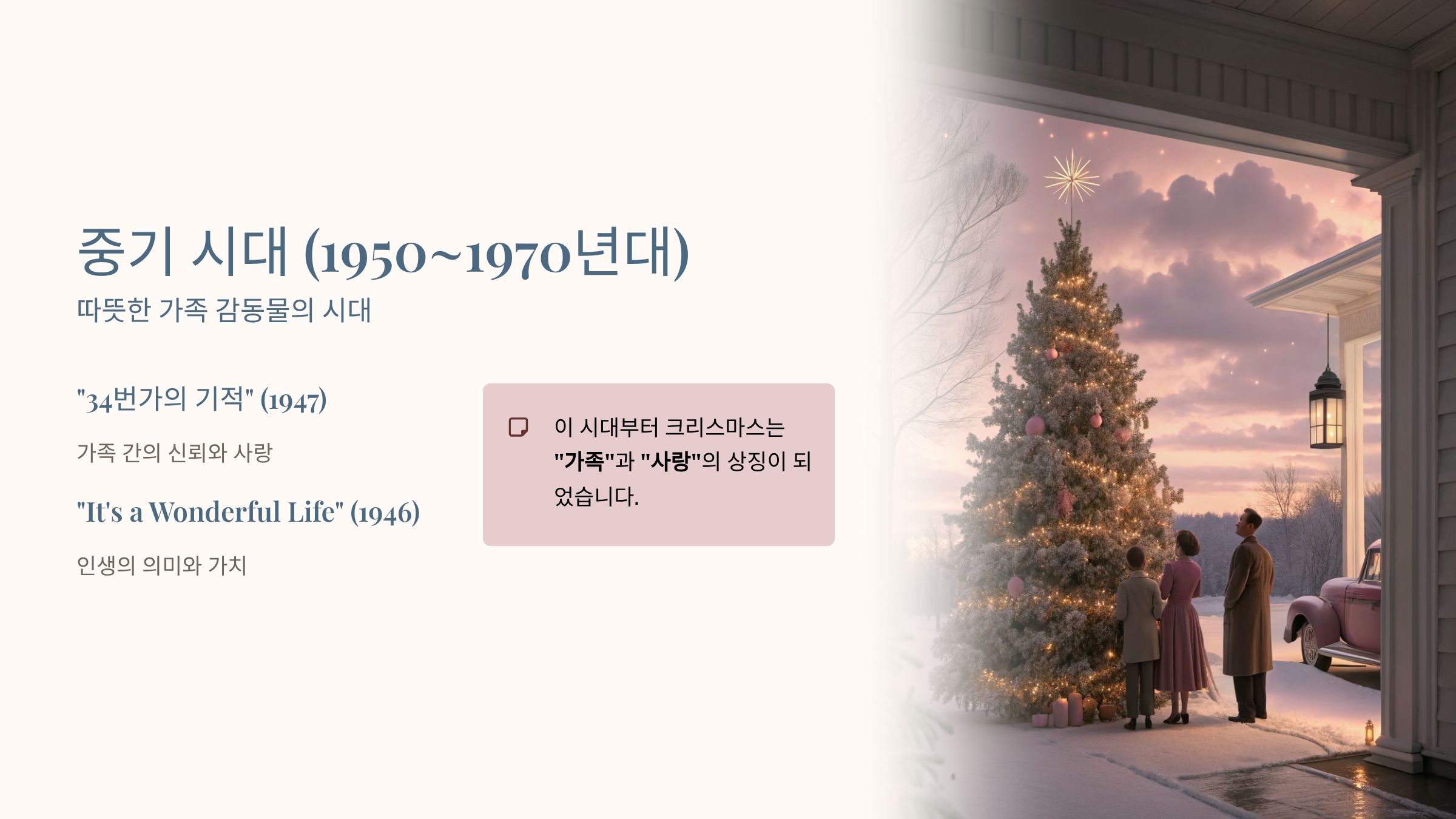 - 이 시대부터 크리스마스는 **"가족"과 "사랑"**의 상징이 됨