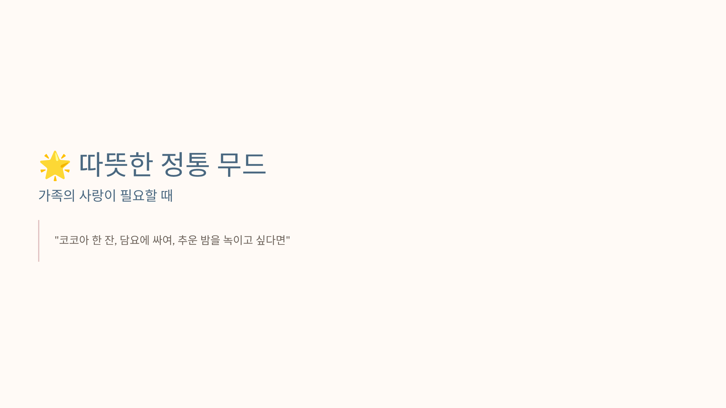 🌟 따뜻한 정통 무드: 가족의 사랑이 필요할 때