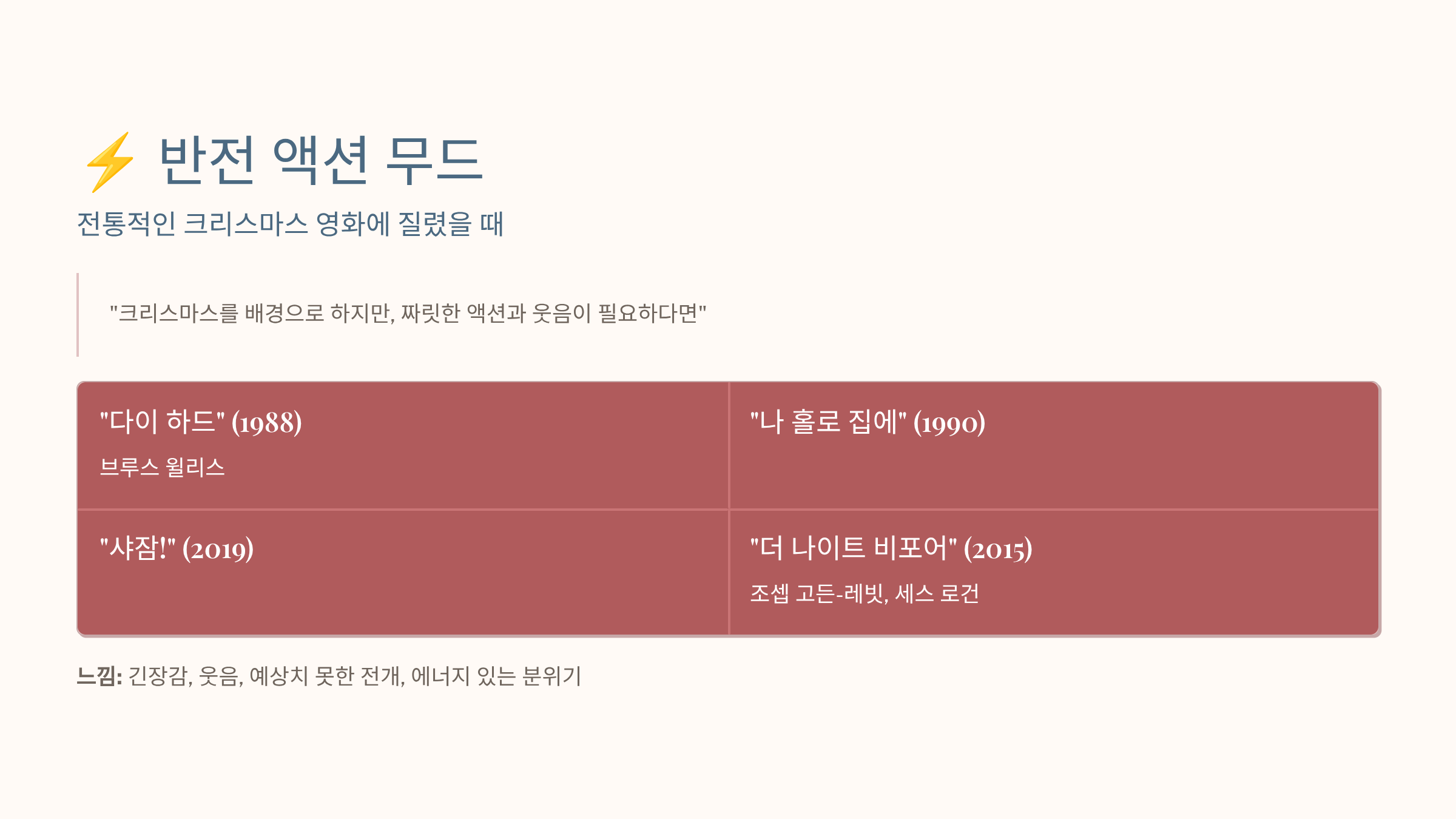 ⚡ 반전 액션 무드: 전통적인 크리스마스 영화에 질렸을 때
