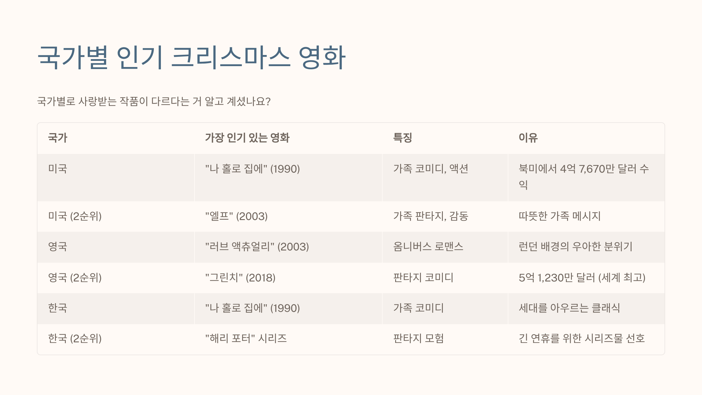 2. 세계인이 사랑하는 크리스마스 영화: 국가별 순위 비교 🌍