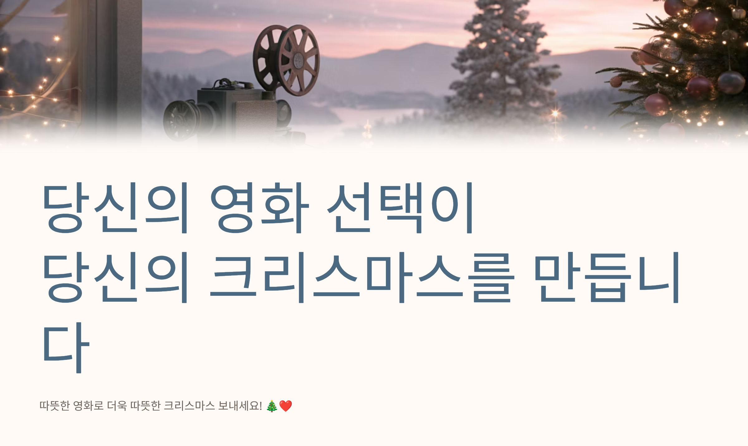 당신의 영화 선택이 당신의 크리스마스를 만듭니다. 따뜻한 영화로 더욱 따뜻한 크리스마스 보내세요! 🎄❤️