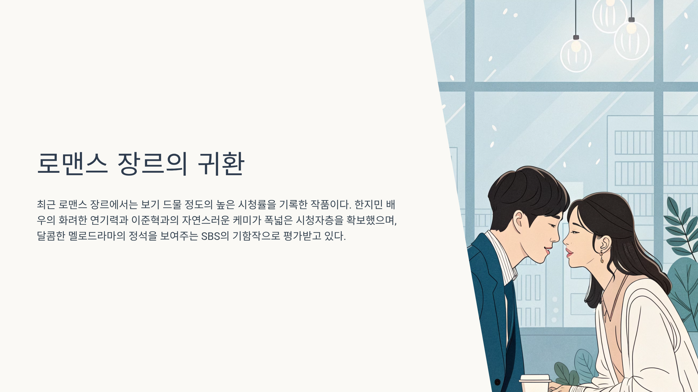 〈나의 완벽한 비서〉가 로맨스 장르에서 12% 시청률을 기록한 것은 이례적이다. 신선한 설정과 배우들의 케미가 현대 시청자들을 다시금 감동시키고 있다.
