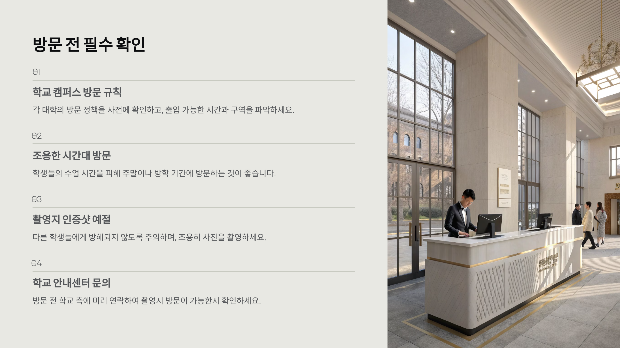 - 촬영지 인증샷 예절 - 다른 학생들에게 방해되지 않도록 주의