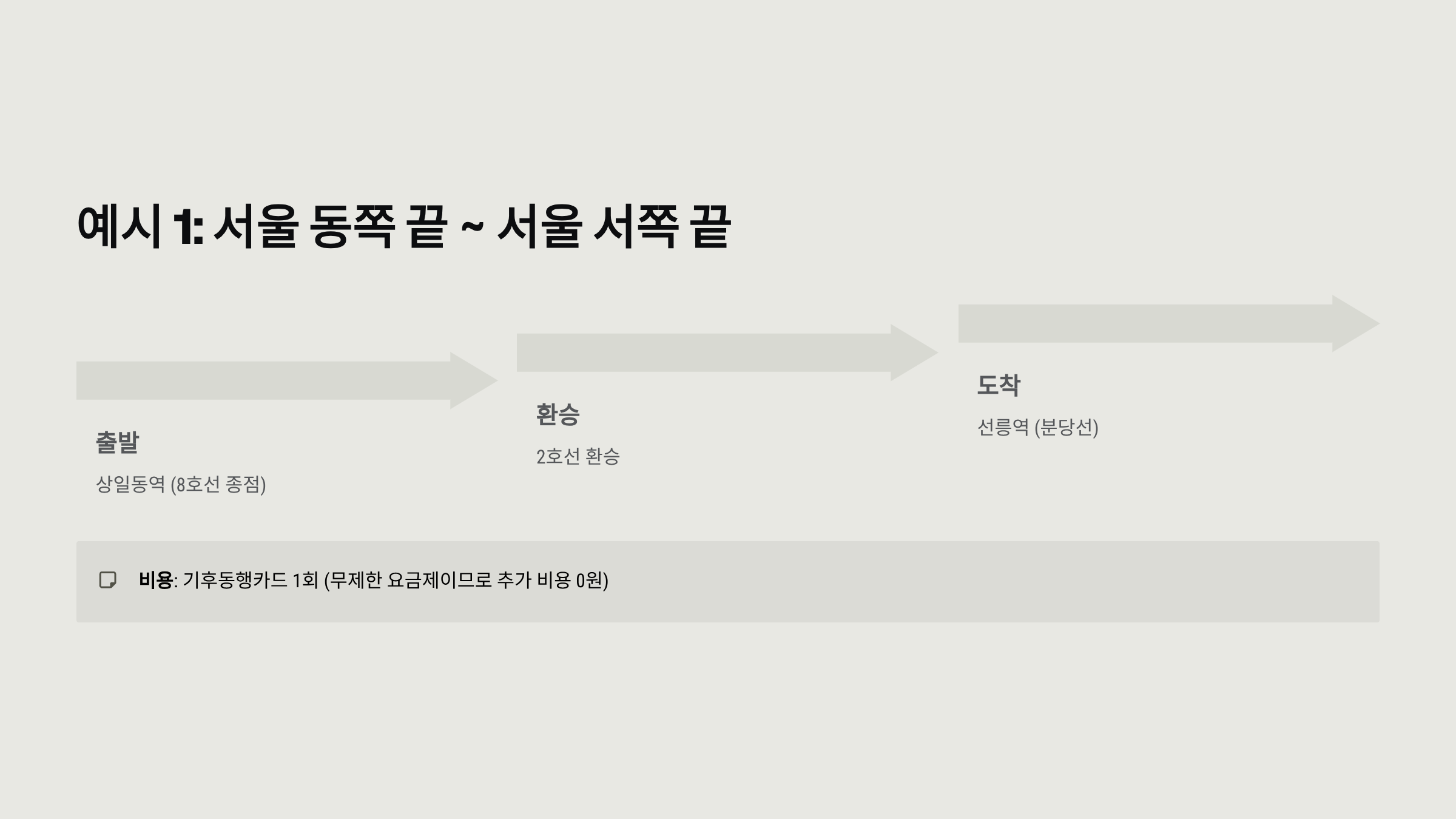 - 비용: 기후동행카드 1회 (무제한 요금제이므로 추가 비용 0원)