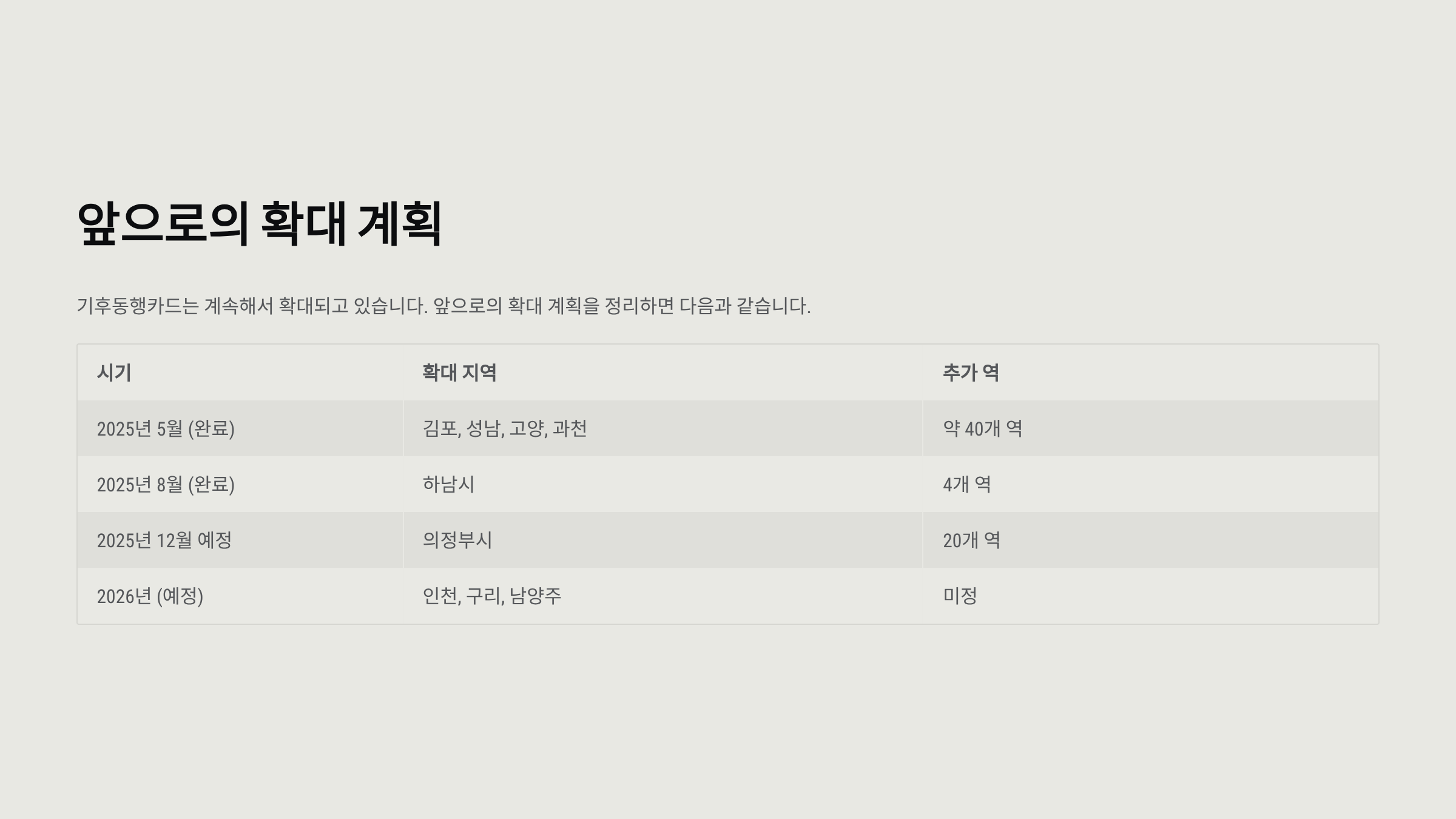 기후동행카드는 계속해서 확대되고 있다. 앞으로의 확대 계획을 정리하면 다음과 같다.